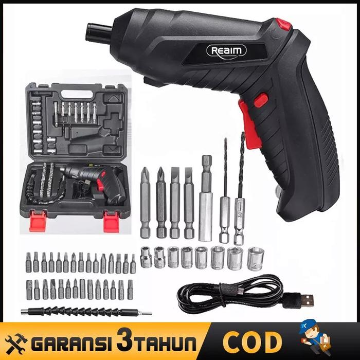 PALING DICARI ! REAIM MESIN BOR CORDLESS MINI 49PCS SET 4.2V /CORDLESS SET SCREWDRIVER BATERAI BOR MINI TERMURAH