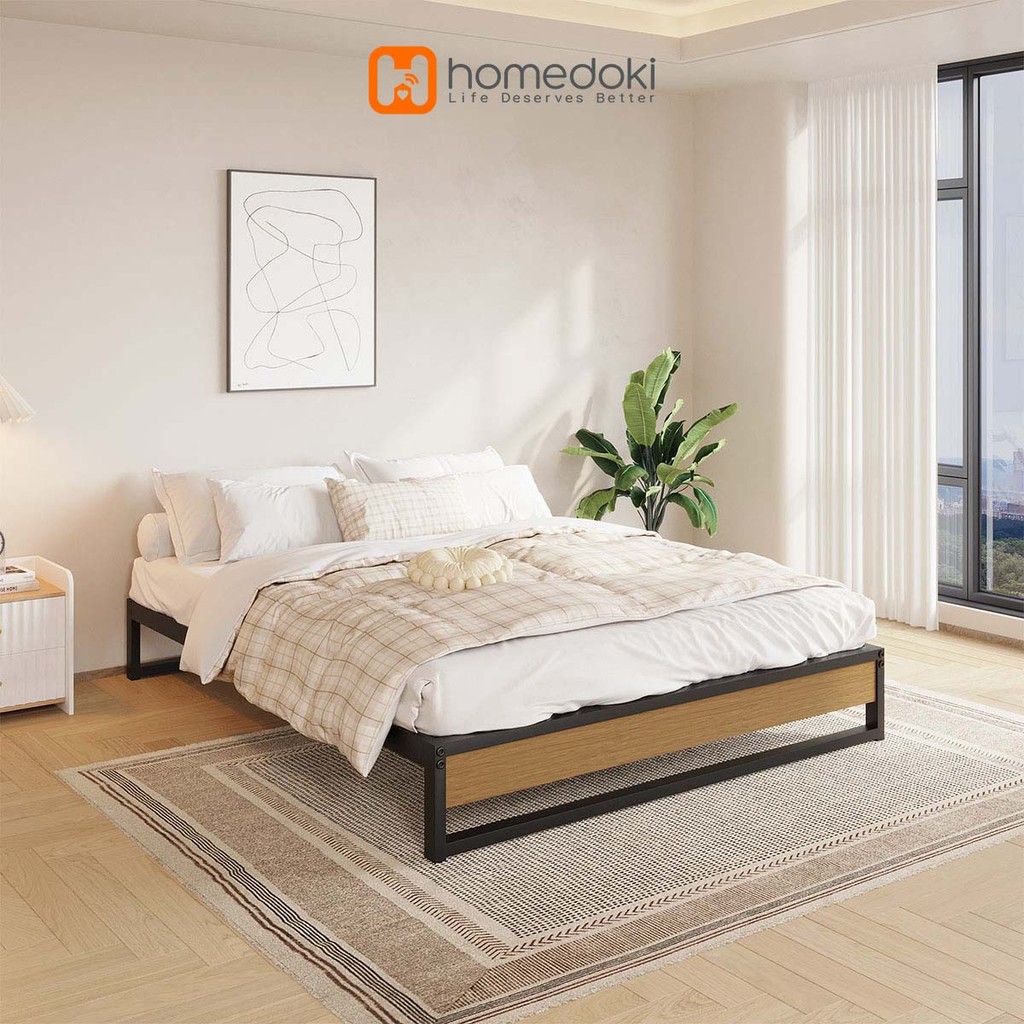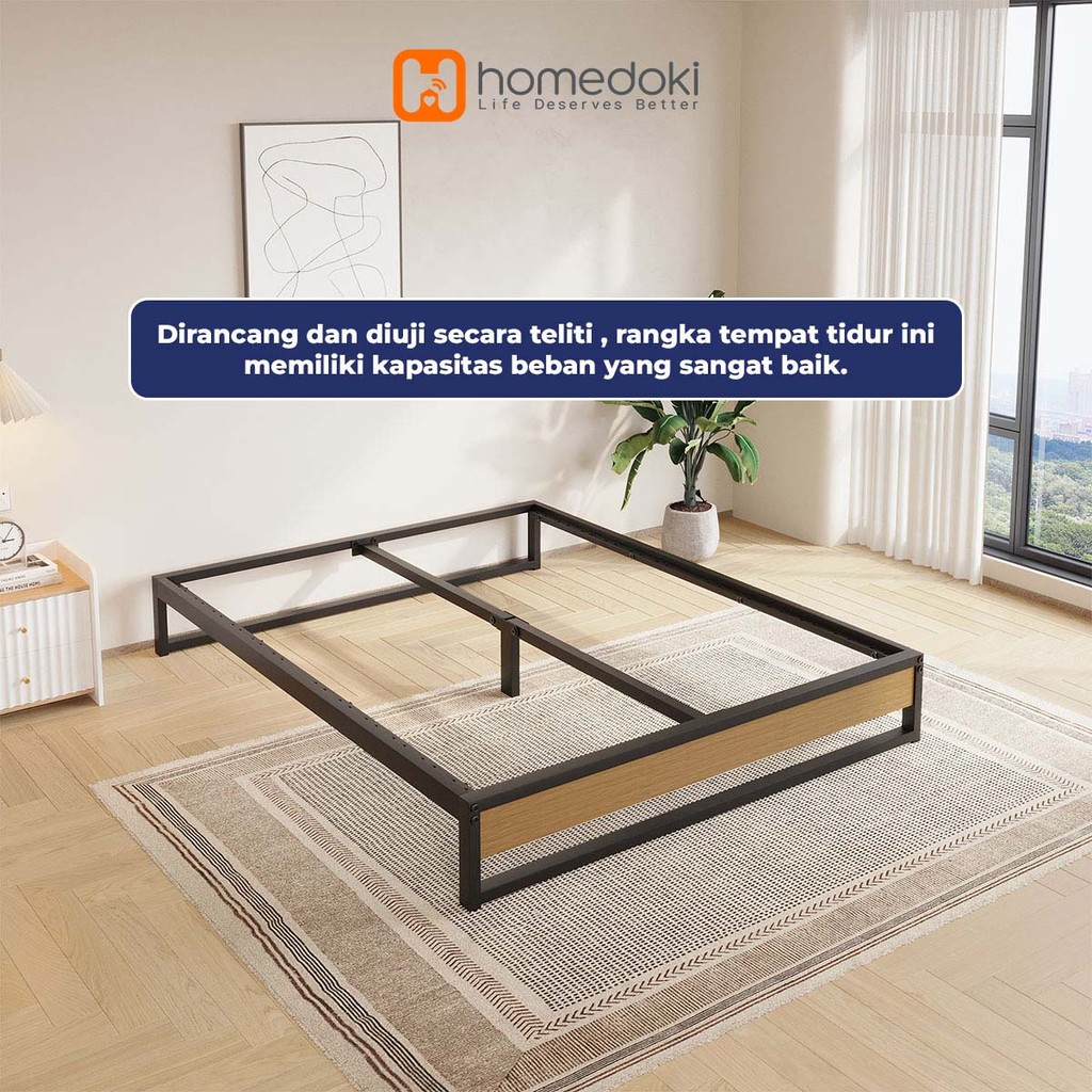 Homedoki Serena Series Dipan Tempat Tidur Low Ranjang Besi Kayu Bed In A Box