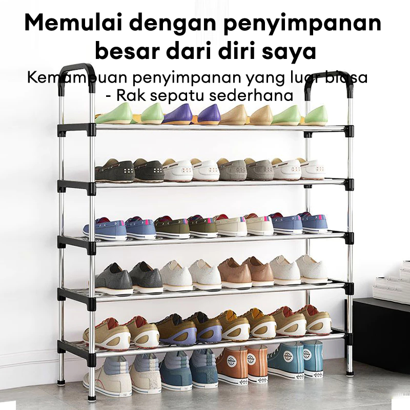 Rak Sepatu 5 Susun Minimalis - Serbaguna dengan Gantungan Payung Modern Space Saving & Stabil Anti Ambrol