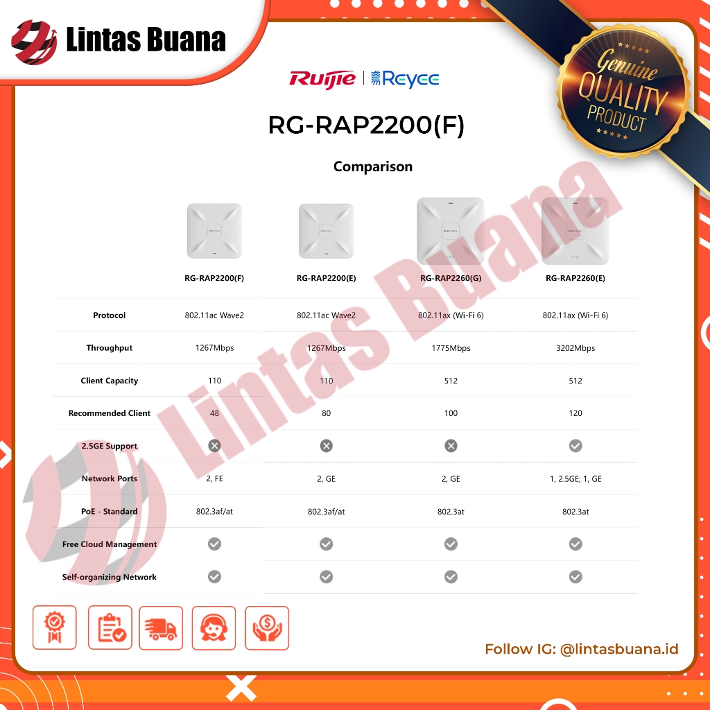 Ruijie Reyee RG-RAP2200(F) Reyee Wi-Fi 5 1267Mbps Ceiling Access Point RG-RAP 2200 F