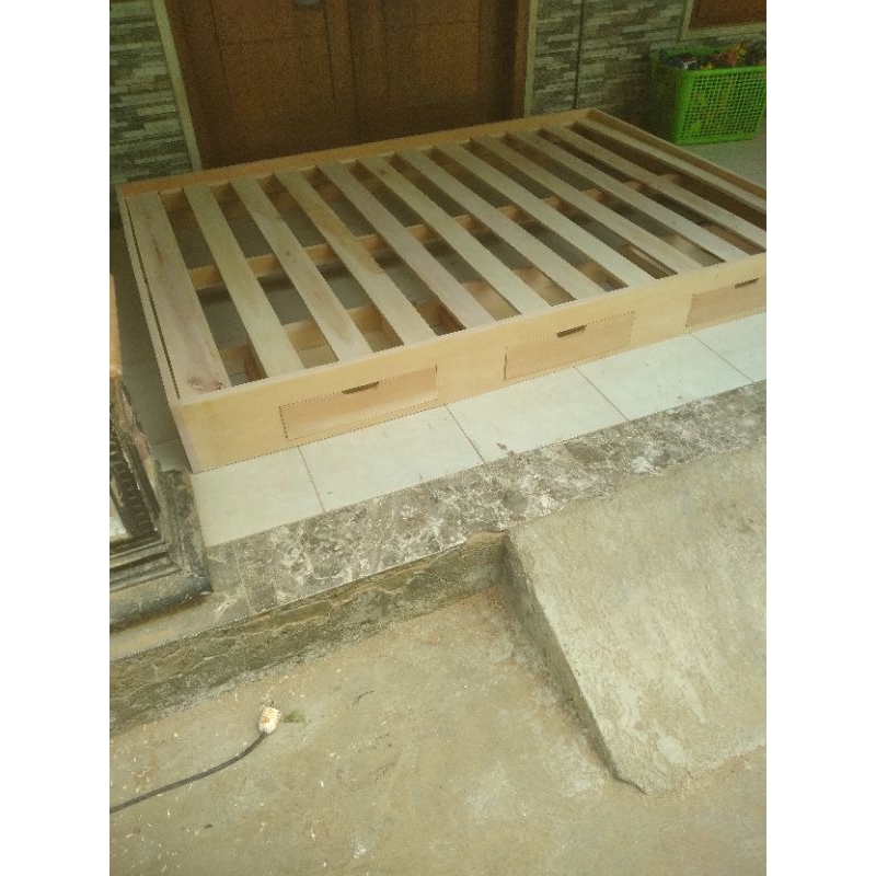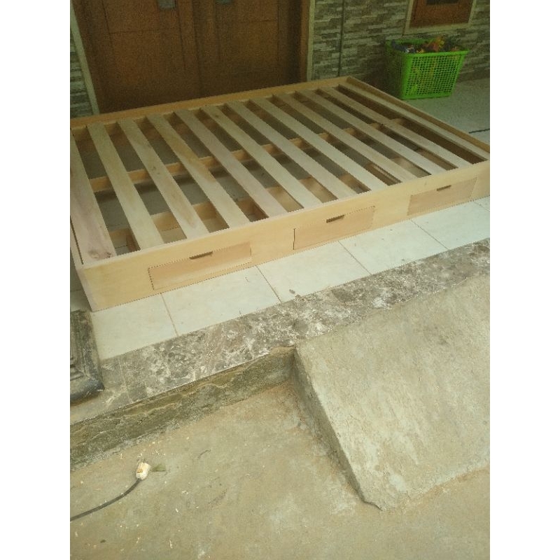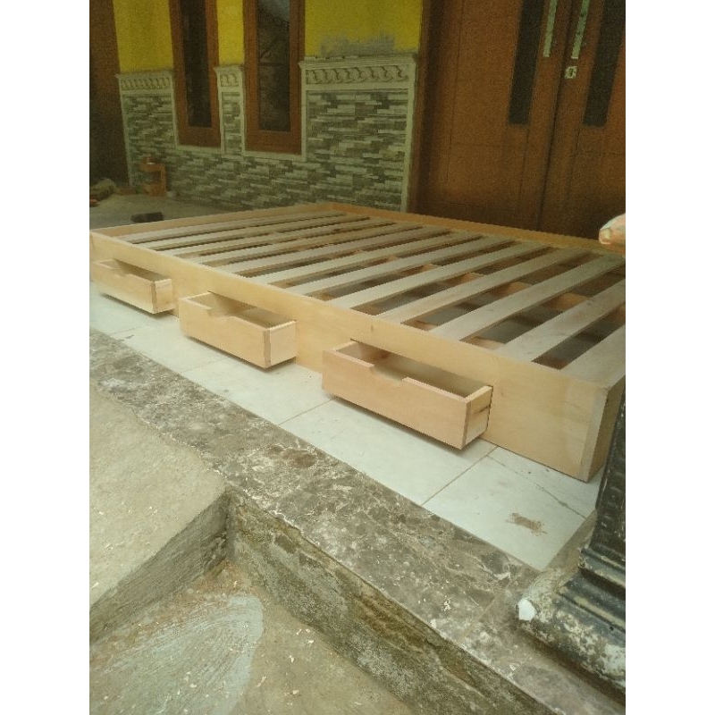 Dipan Laci Minimalis Kayu Mahagoni Lebar 160 Panjang 200