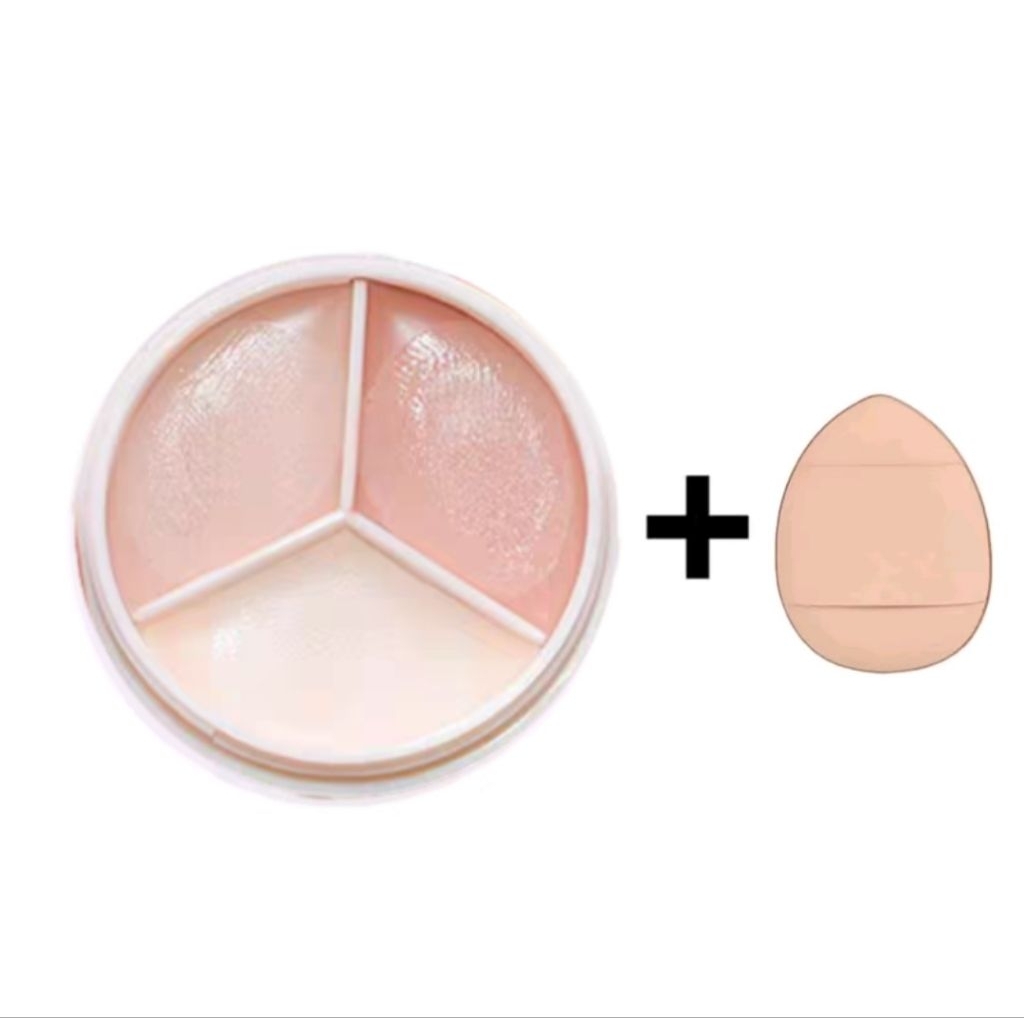 FREE SPON Concealer Concealer Tiga Warna, Palet Concealer, Menutupi Noda, Bekas Jerawat, Lingkaran Hitam