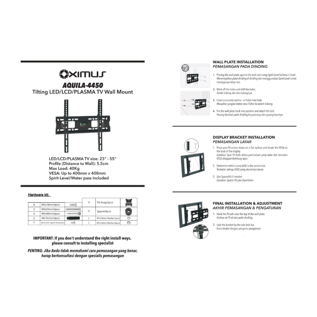 BRACKET TV Tilt LCD LED TV 23" - 55" OXIMUS AQUILA 4450