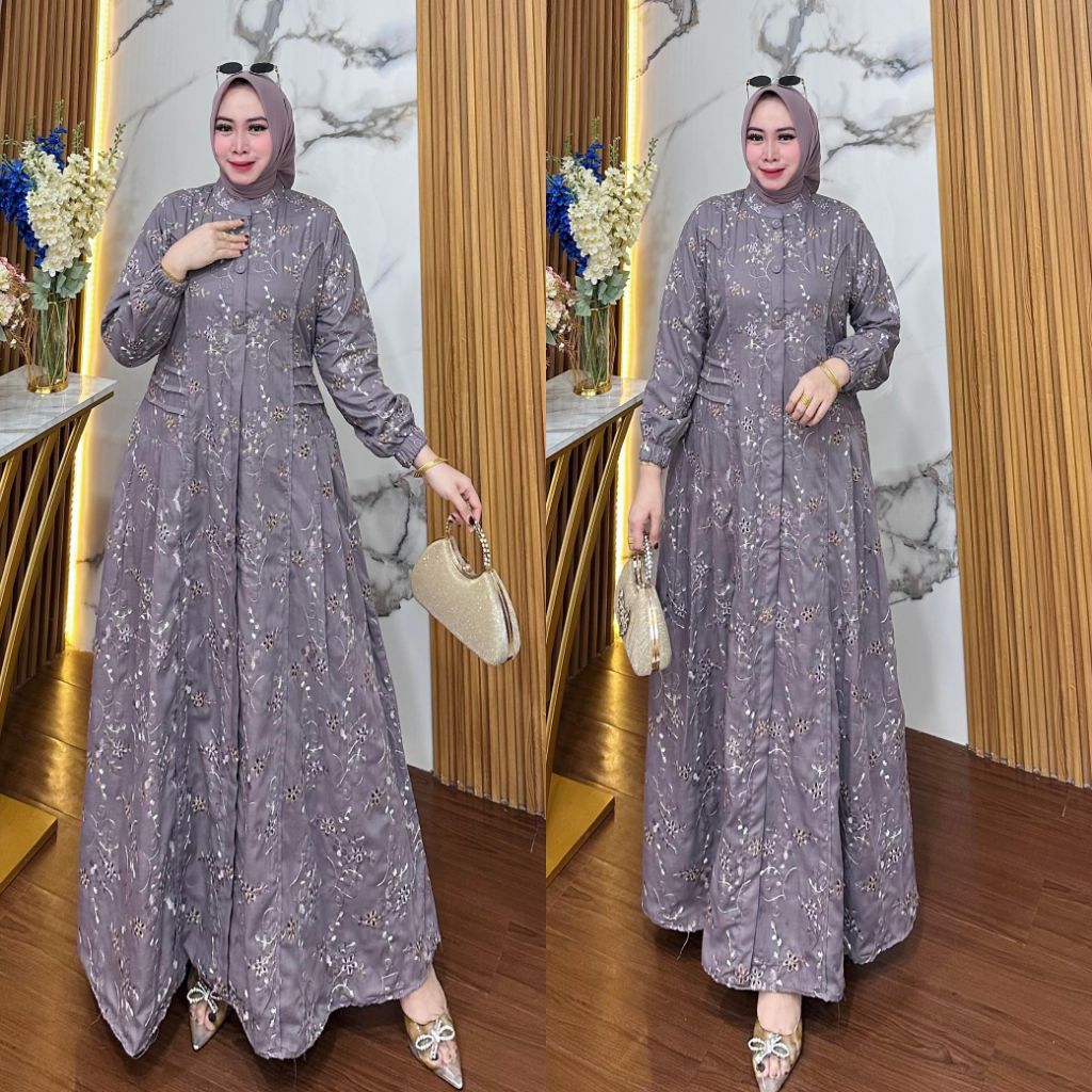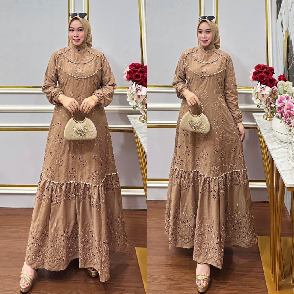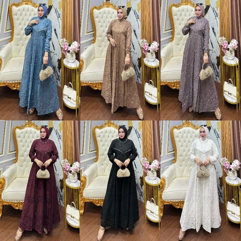 BEST SELLER ✓✓AQILA DRESS PREMIUM/KATUN BORDIR BOLONG (VARIASI RENDA PAYET MUTIARA)DRESS PESTA PREMIUM SIMPEL DAN ELEGAN//GAMIS KONDANGAN KATUN BORDIR BOLONG