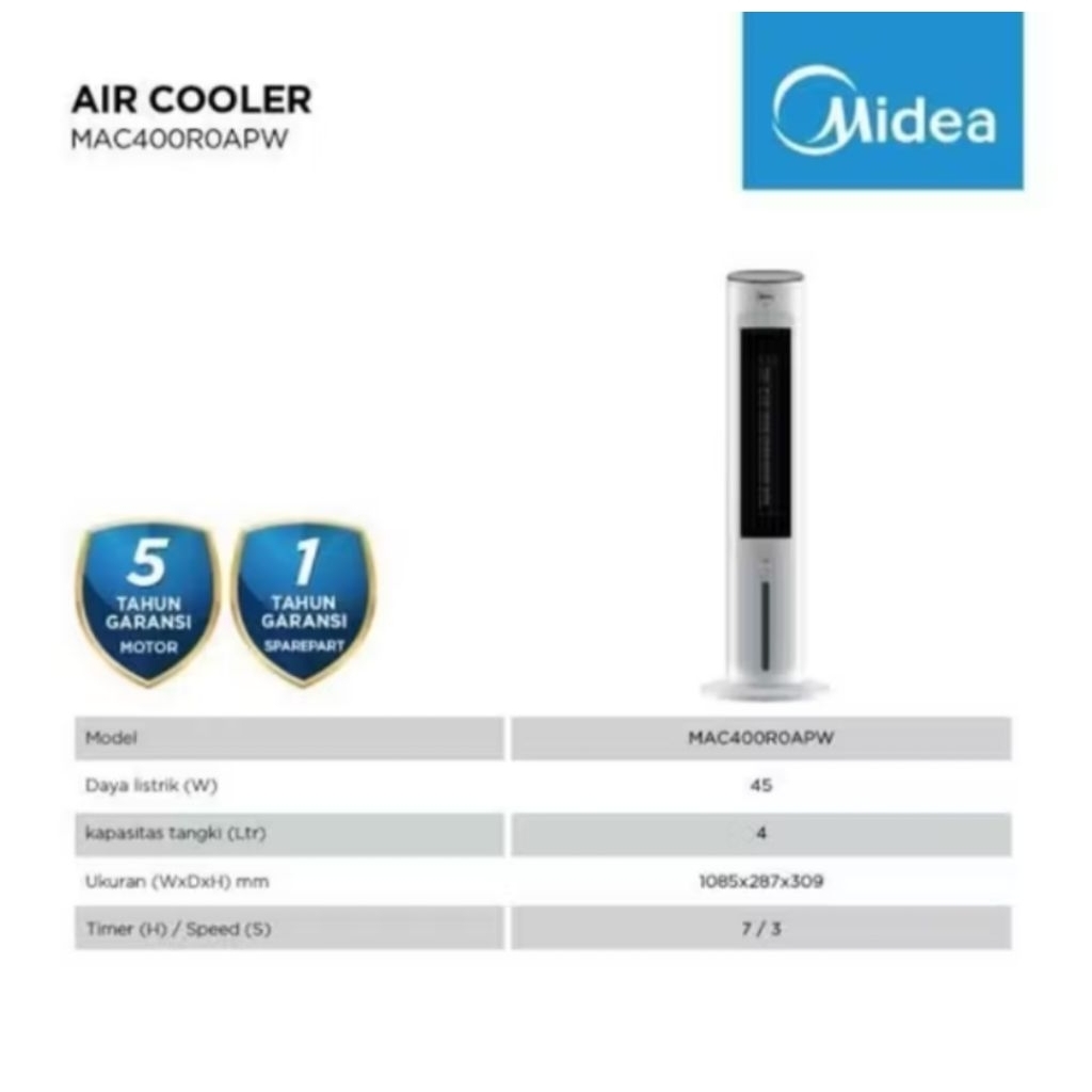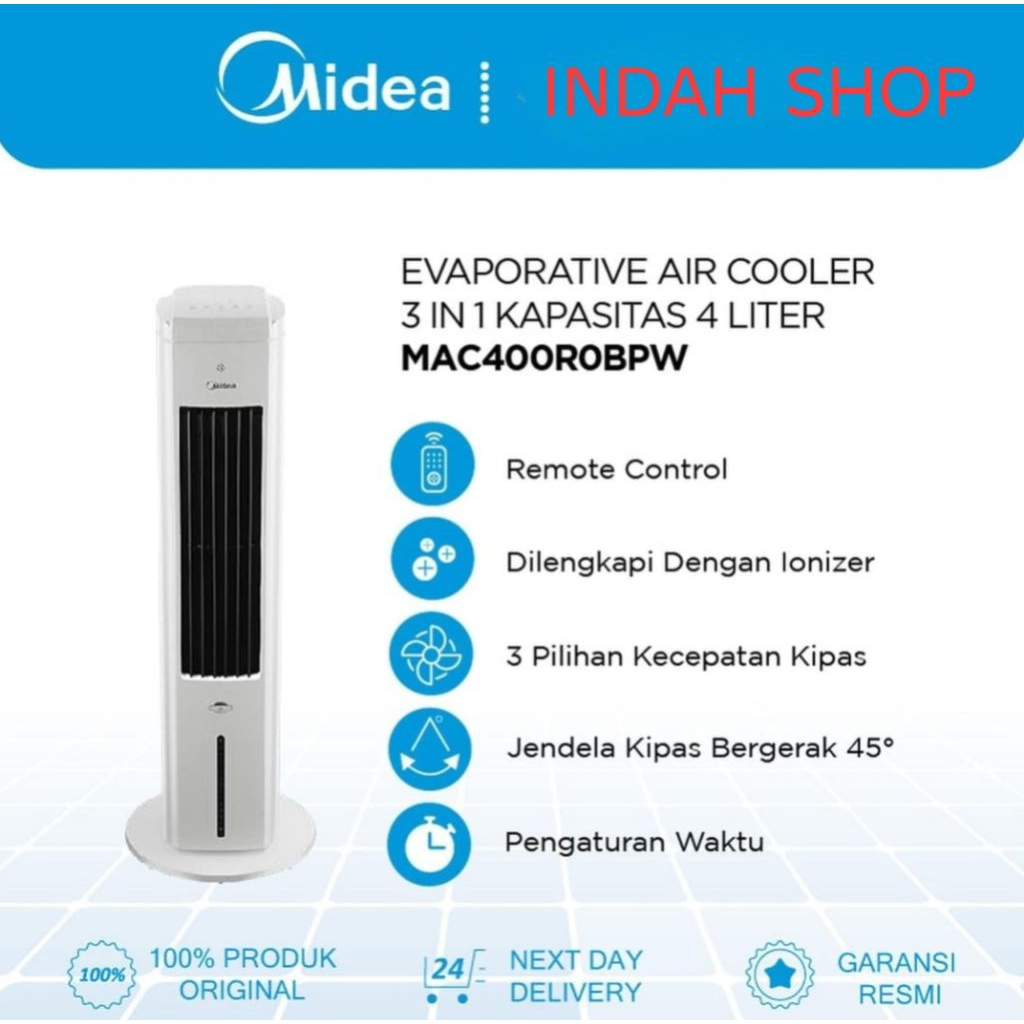 Midea Tower Fan Air Cooler MAC400R0APW 4in1 4L Ionizer Diffuser Remot Control