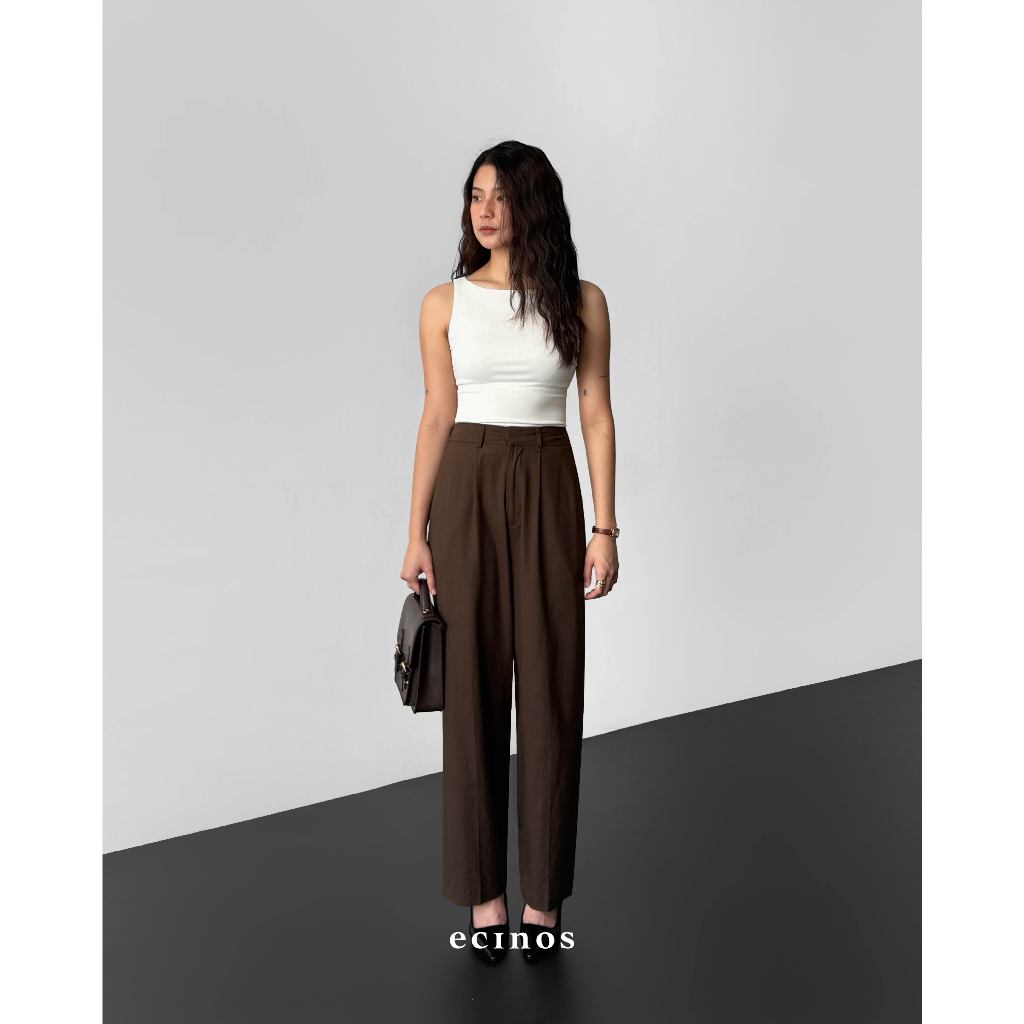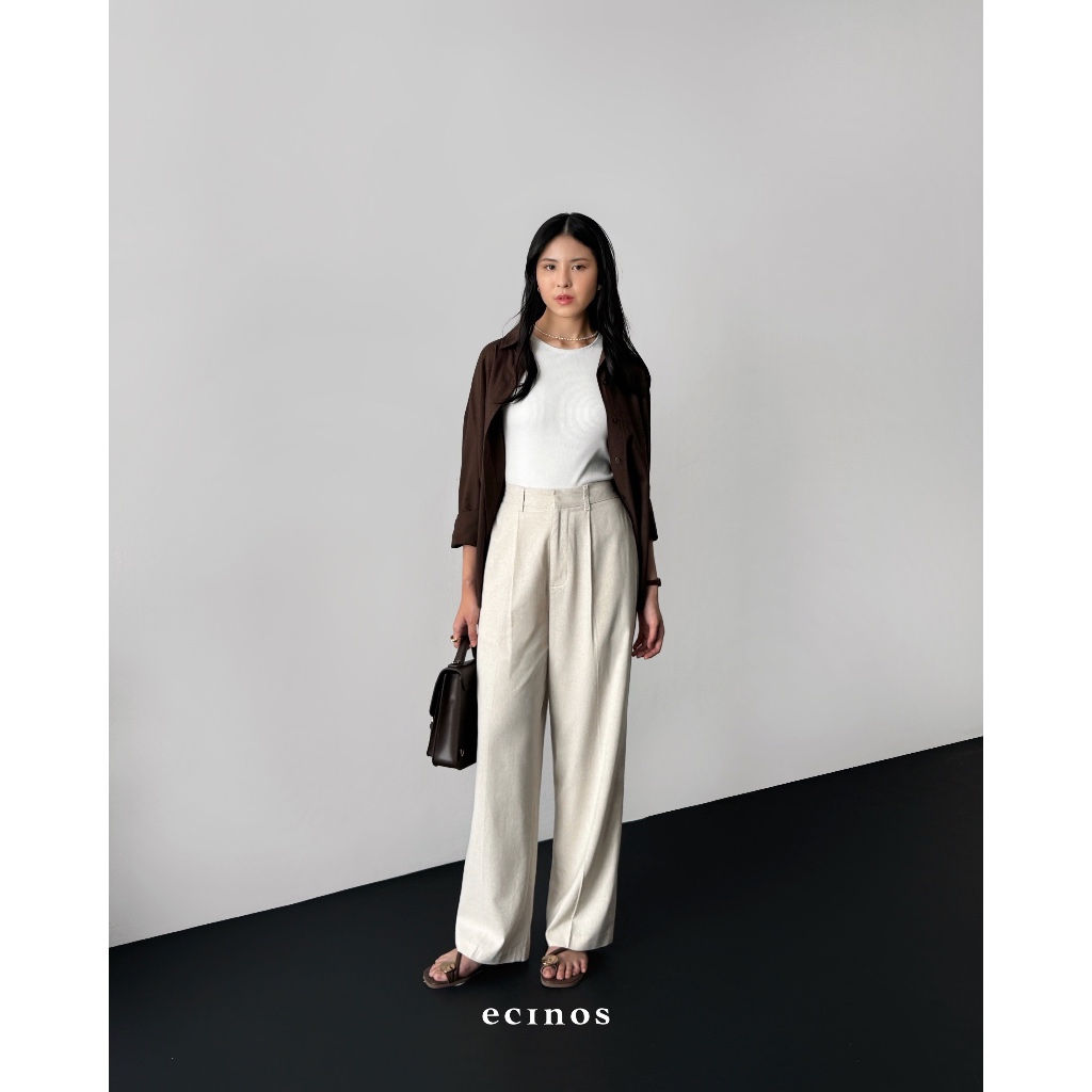 ECINOS - Agape Linen Trousers 2.0 | Celana Wanita | Celana Panjang Highwaist