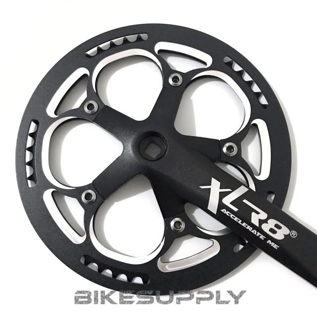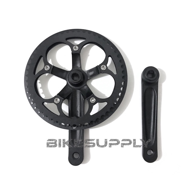 Crank Set Sepeda Single Speed Merk XLR8 53 T Alloy Steel Hitam Black (Crankset 53T)