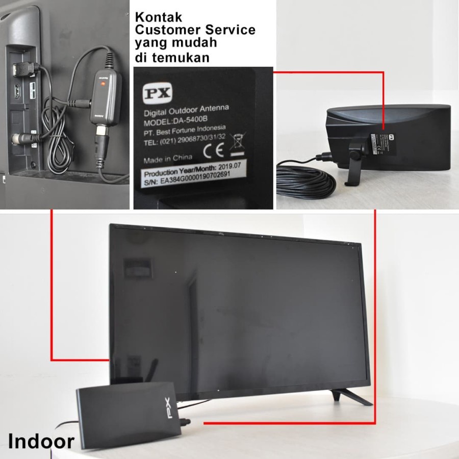 PX DA 5400B Antena TV Digital Analog+Kabel 12M Booster Indoor/Outdoor