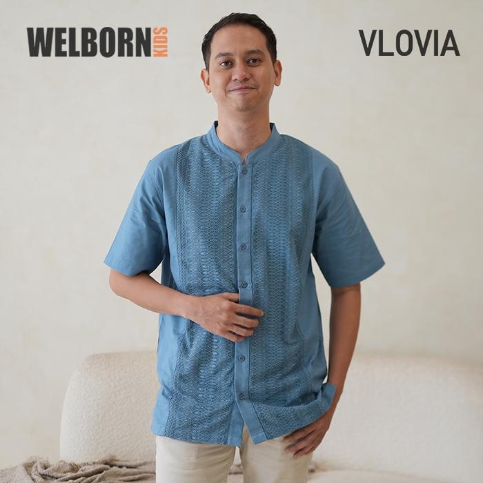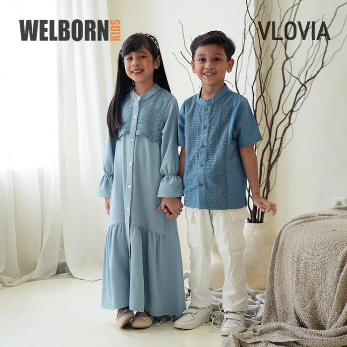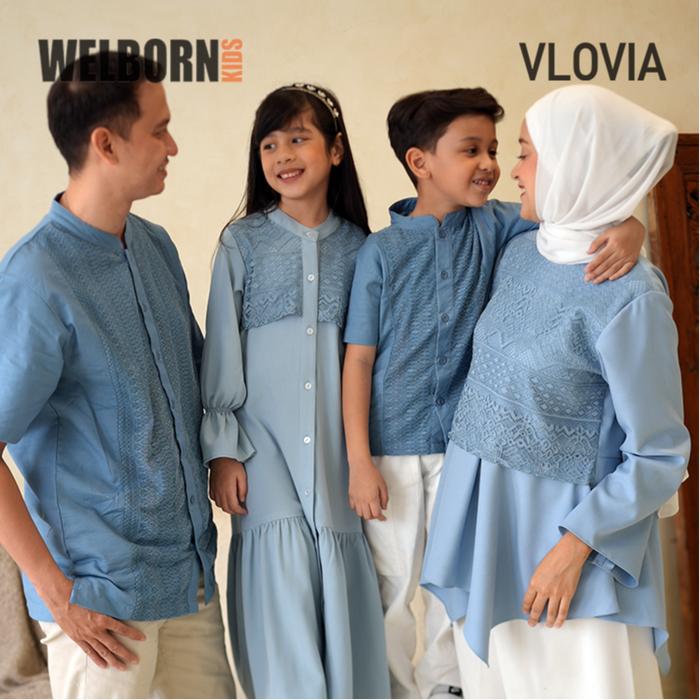 WELBORN KIDS X VLOVIA SARIMBIT BAJU MUSLIM KOKO PREMIUM RAYA KELUARGA COUPLE AYAH ANAK LAKI LAKI ATASAN KATUN BIRU - BLUE, 4