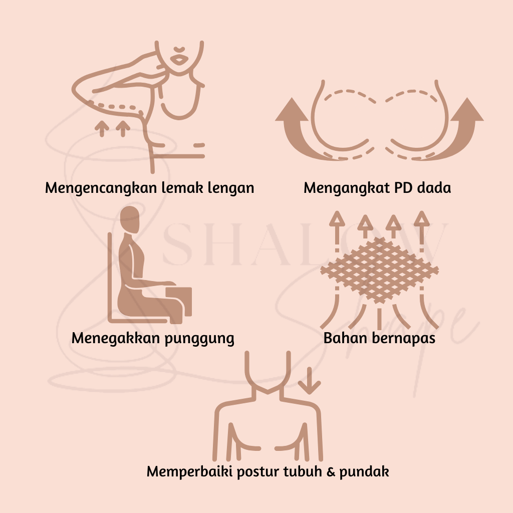 SHALOW M-5XL Luna Short Korset Pengecil Lengan Gelambir Korset Lengan Korset Lengan Pendek