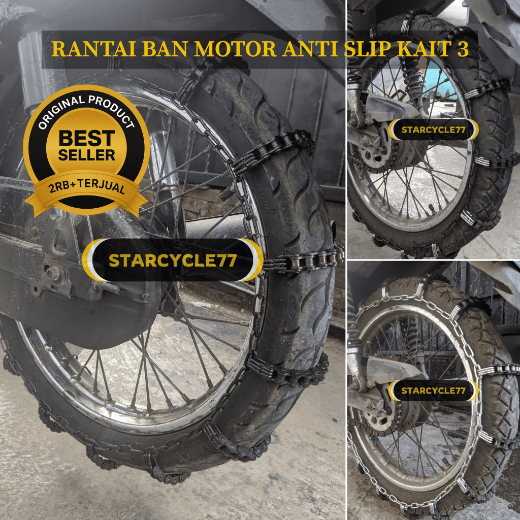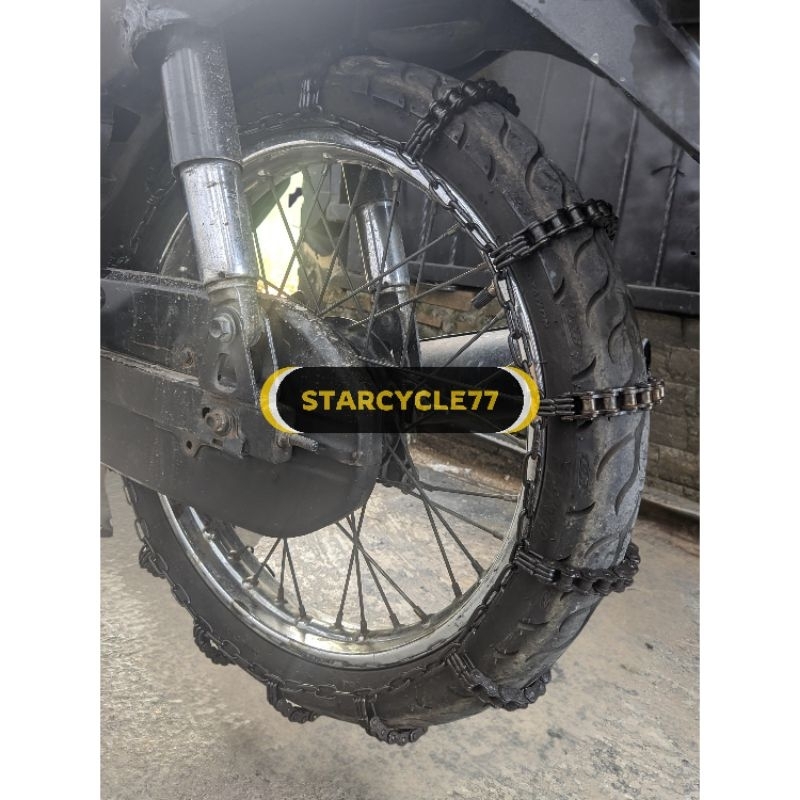 Rantai ban motor anti selip kait 3 full hitam, list hitam, list putih ring 14 17 18 rantai ban lumpur