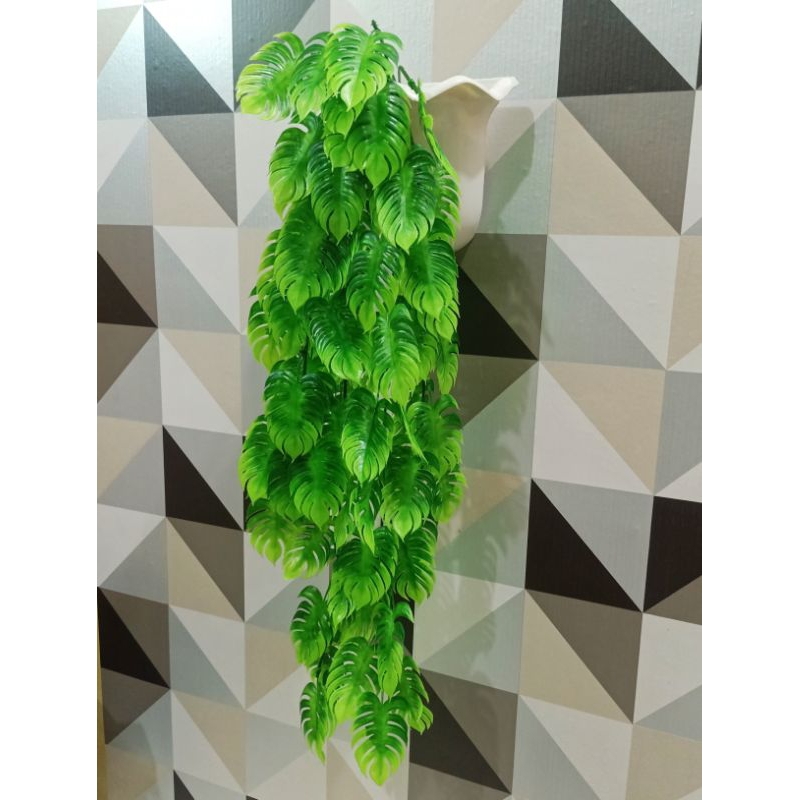Rambat Daun Kwaci Artificial Dengan Pot Dinding Ombak+Busa
