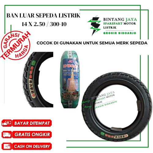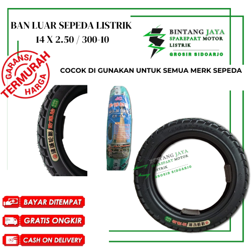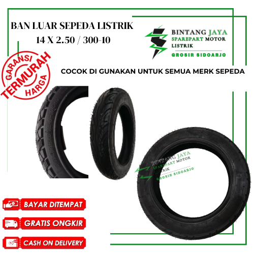 Ban Luar Sepeda Listrik Tubless Ukuran 14 x 2.50 E-Bike Tubeless Hitam High Quality