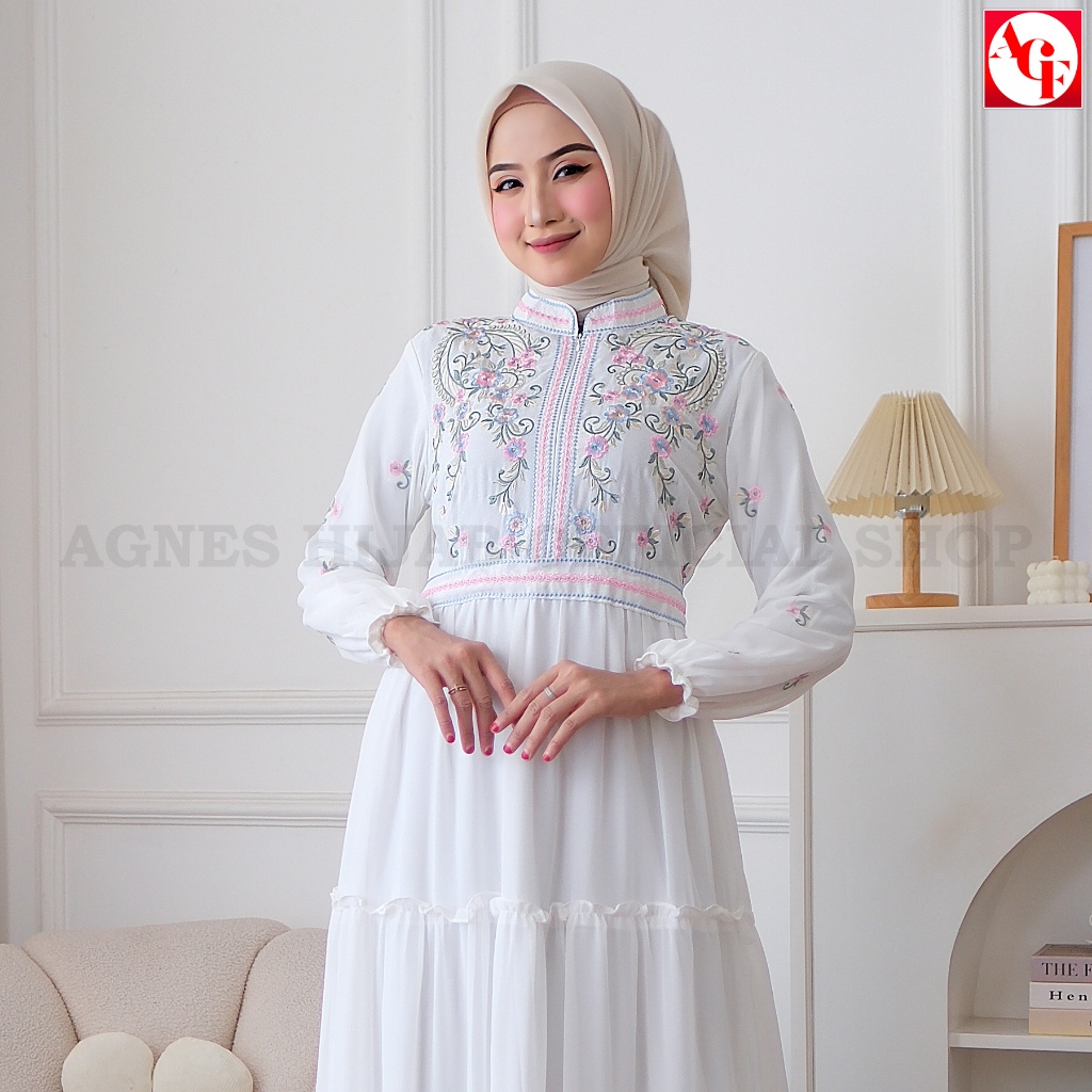 [NEW] Agnes Hijab - Khayla Dress Gamis Putih Lebaran 206 Terbaru Bordir Bunga Baju Abaya Muslim Wanita Akad Umroh 860