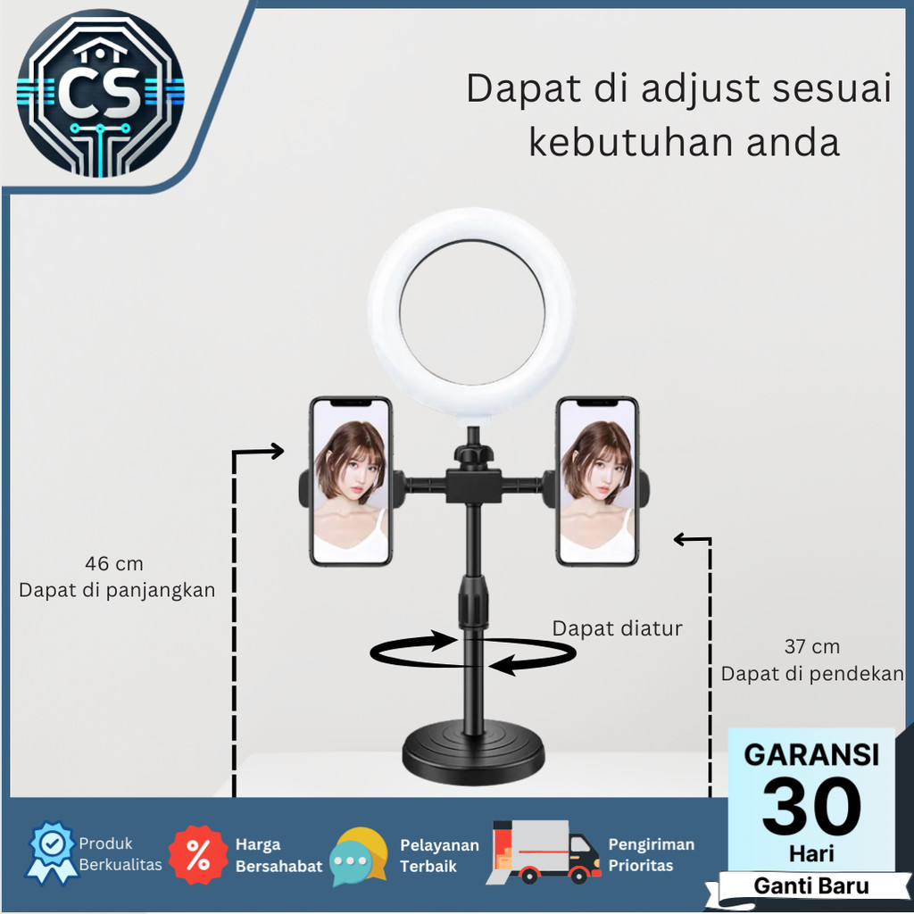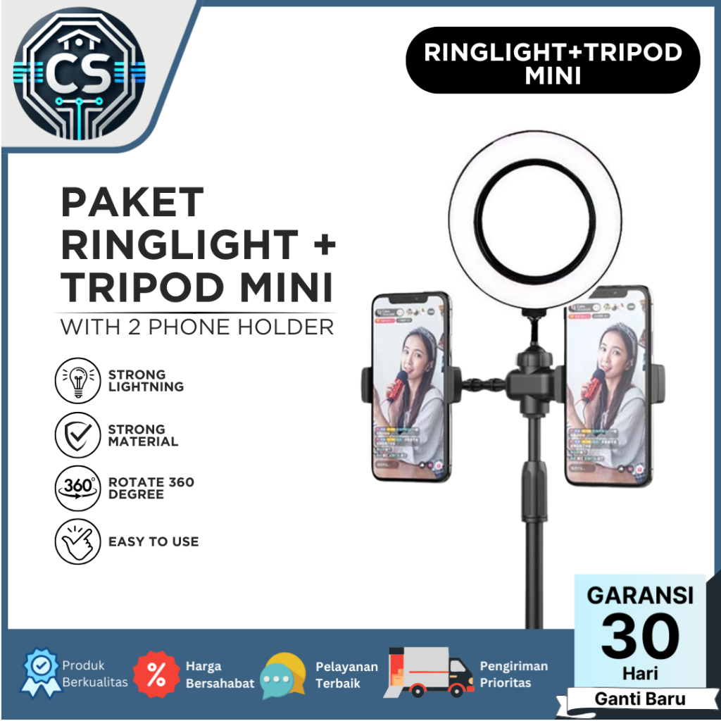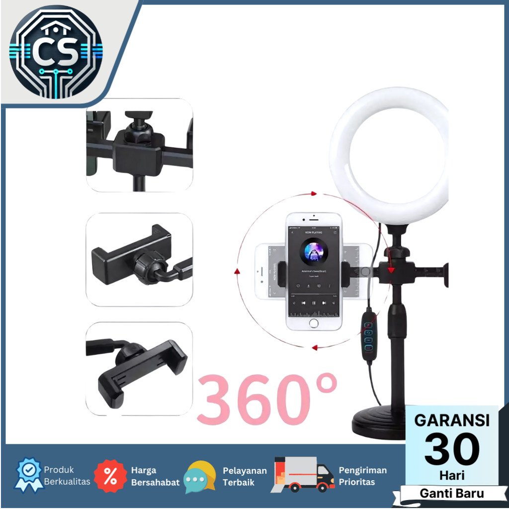 Ring Light 16cm + Tripod + 2 Holder Mini Stand HP Live Stream Selfie Make Up Vlog Lampu