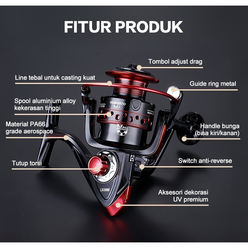 FLAGO Reel Pancing LK Putar Rell Rill Pancing Katrol Kerekan Pancing Fishing Reel Spool Metal Aluminium Reel Pancing