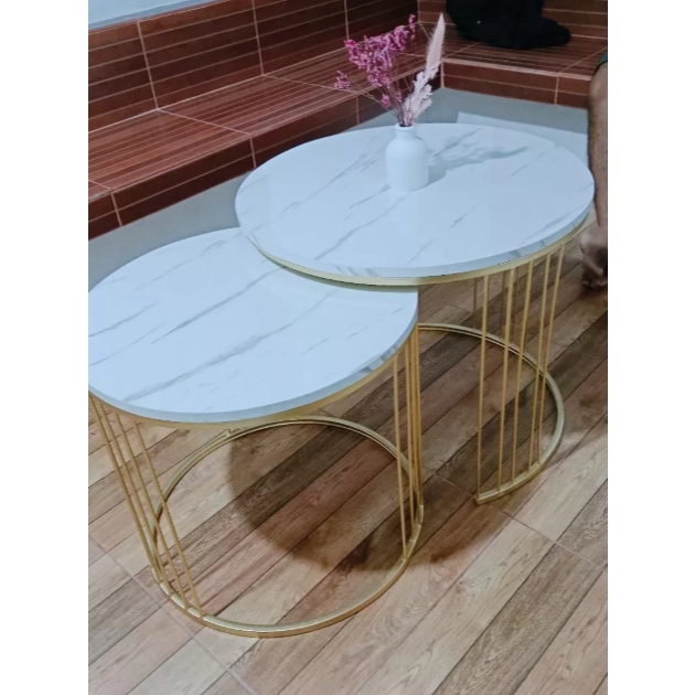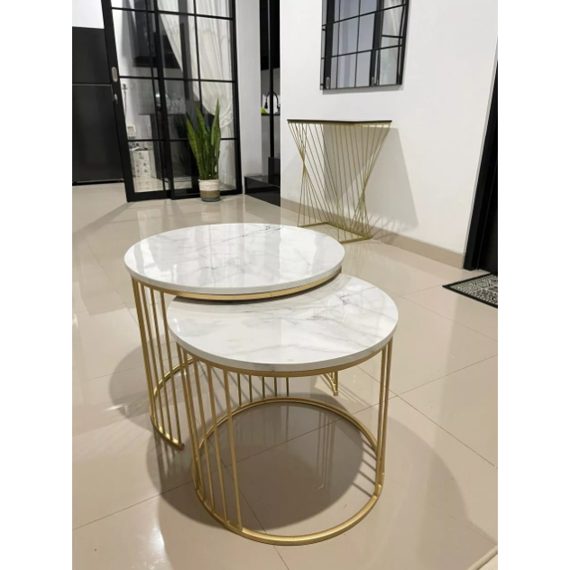 KARGO / ARGAN Meja Ruang Tamu Minimalis 1Set / Besi Hollo HPL Motif Marmer