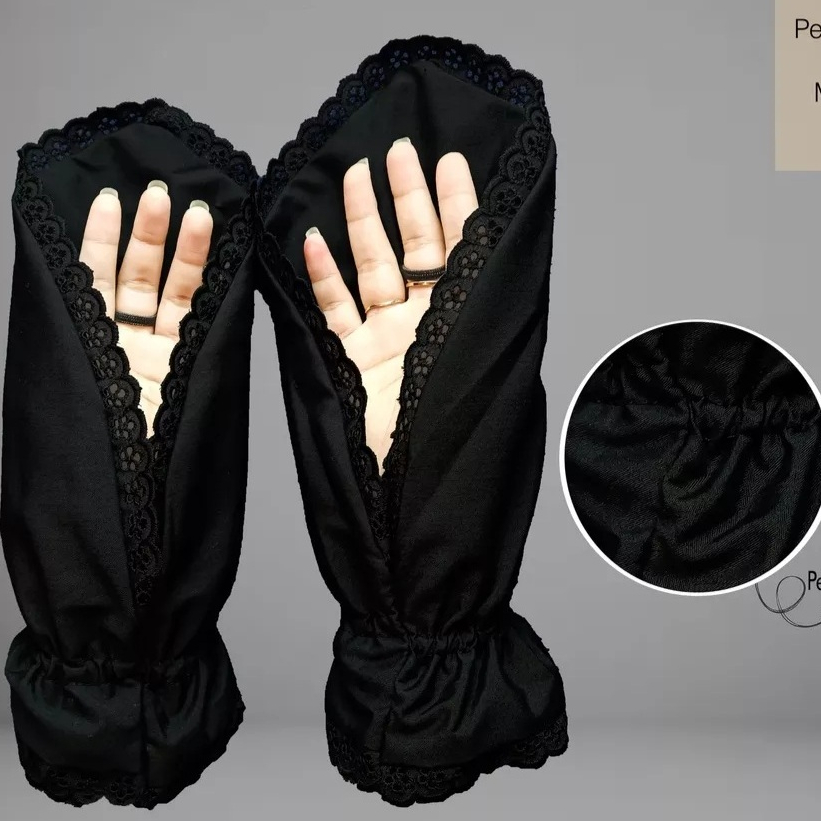 SARUNG TANGAN Sarung Tangan Handshock Wanita Muslimah untuk Umroh dan Haji Warna Putih Hitam POLOS Bahan Katun Micro den