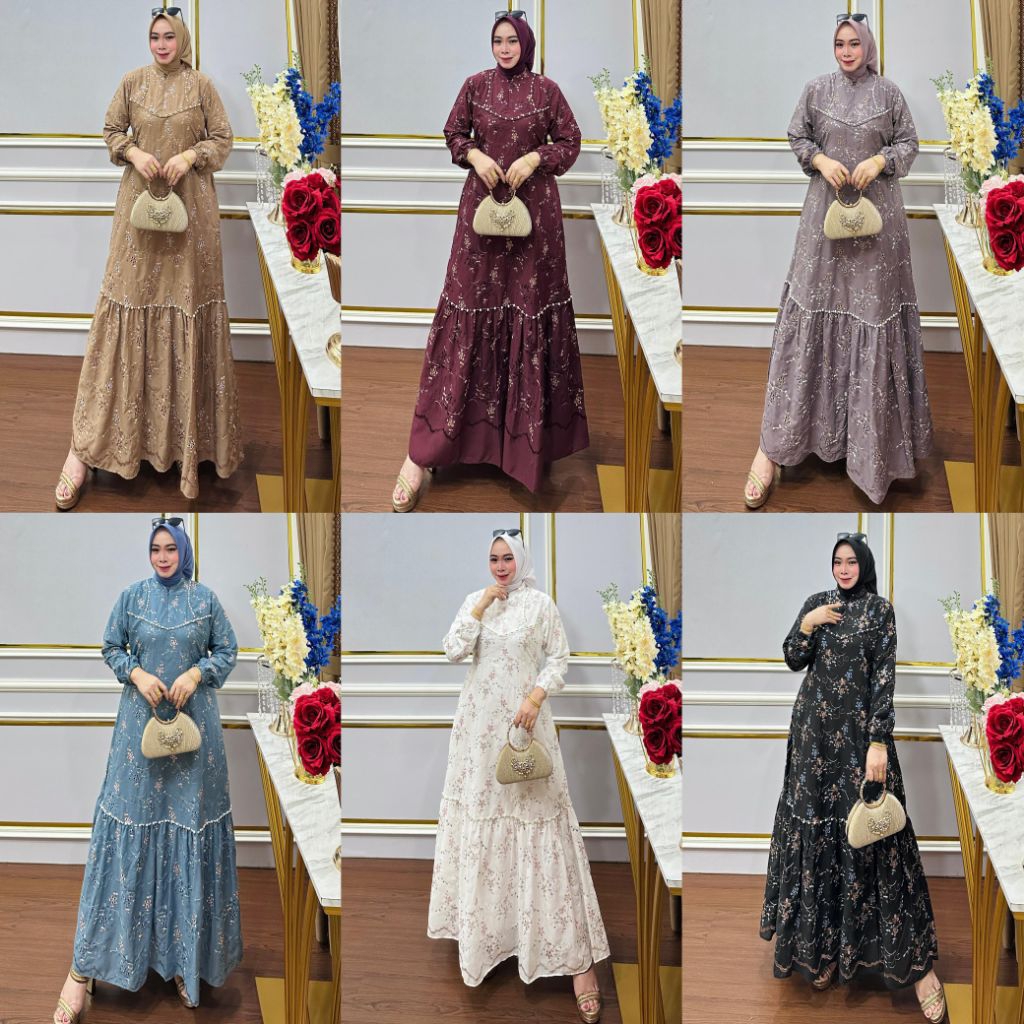 BEST SELLER ✓✓AQILA DRESS PREMIUM/KATUN BORDIR BOLONG (VARIASI RENDA PAYET MUTIARA)DRESS PESTA PREMIUM SIMPEL DAN ELEGAN//GAMIS KONDANGAN KATUN BORDIR BOLONG