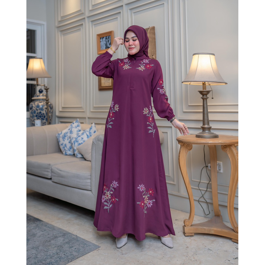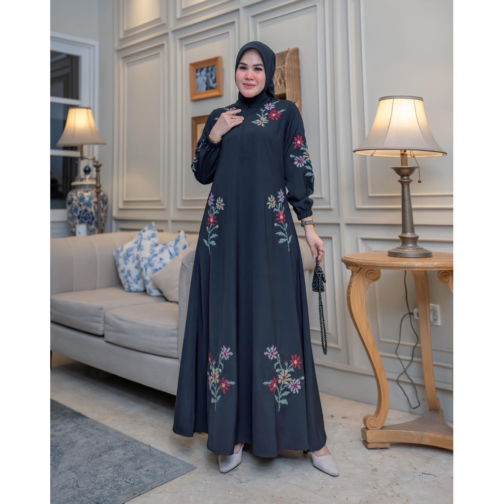 GAMIS ARRAYA BORDIR TERBARU Arraya Drees Motif Bordir Bunga Terbaru Abaya Bordir Gamis Raya Gamis Bordir Bunga