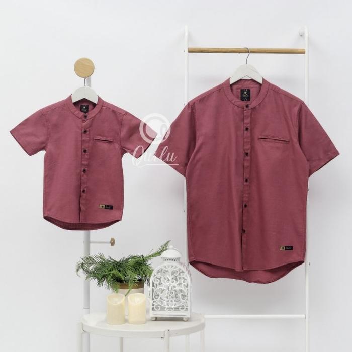 QURLU - KEMEJA KOKO DEWASAANAK WARNA MAUVE TUA BISA COUPLE AYAH ANAK - PENDEK KANCING 12, ANAK, SZ 2