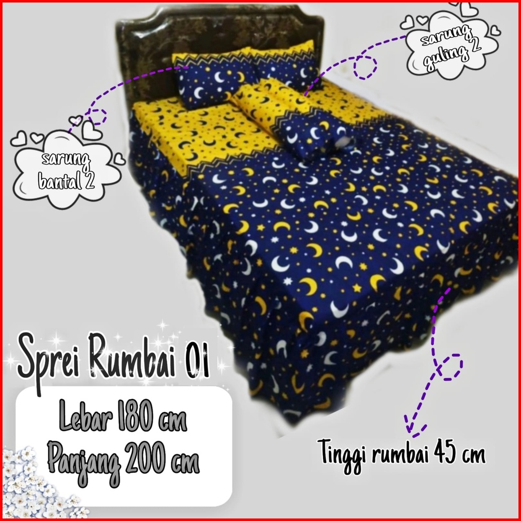 Sprei Rumbai Ukuran 180cm X 200cm Sarung Bantal 2 Guling 2