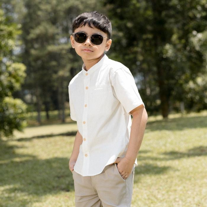 MINI COTTONS KEMEJA KOKO KEMKO ANAK LAKI LAKI KATUN MUSLIM PANJANG BAJU SETELAN LINEN - BLACK, 1-2 TAHUN