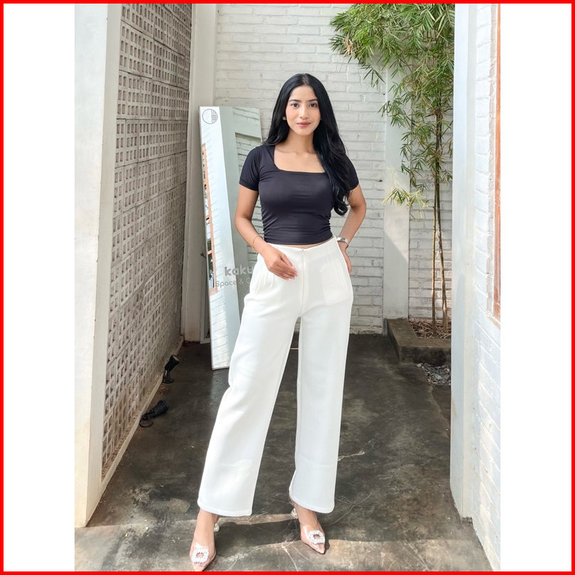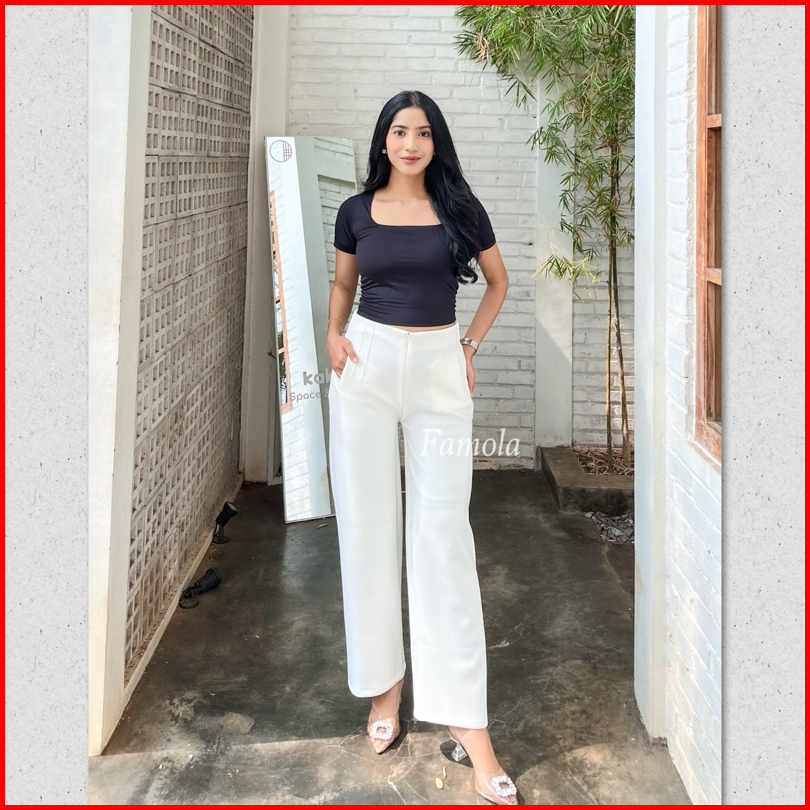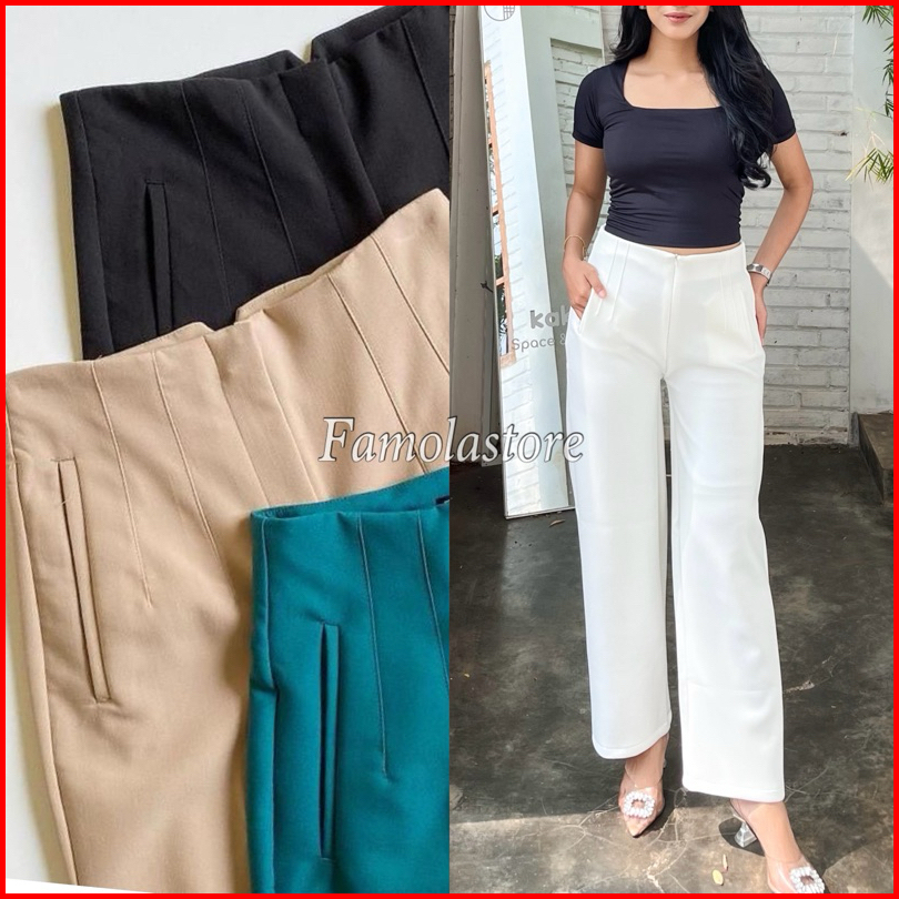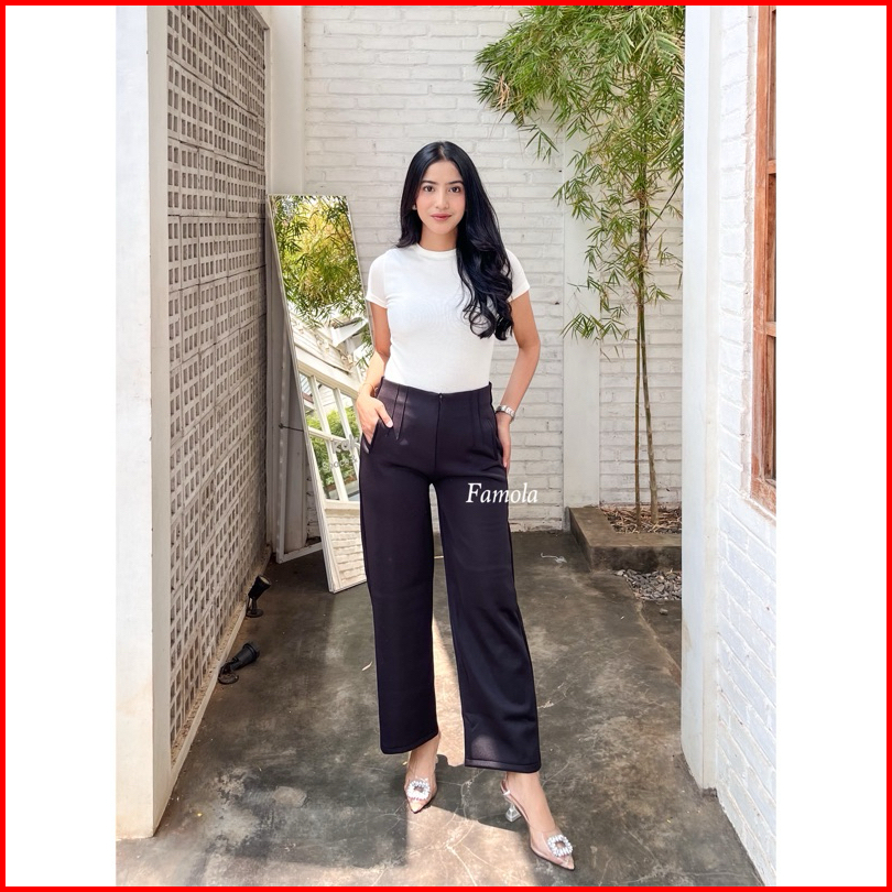 Kulot Zoya Highwaist Loose Pants Saku Paspol Dan Resleting Depan Stretch