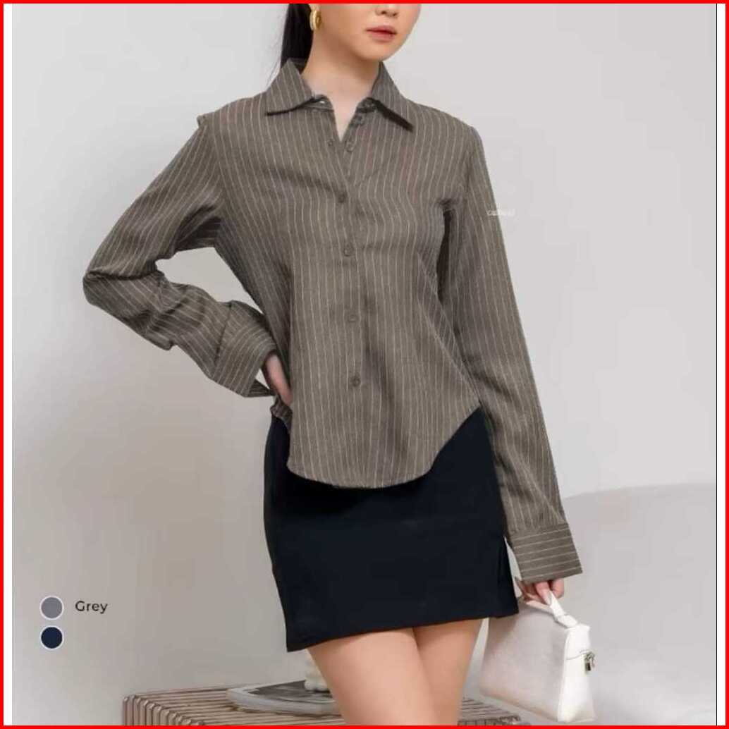 Famola - Luna Stripe Kemeja Fitted - Kemeja Wanita Fitted Atasan Wanita Stripe Salur Basic Casual