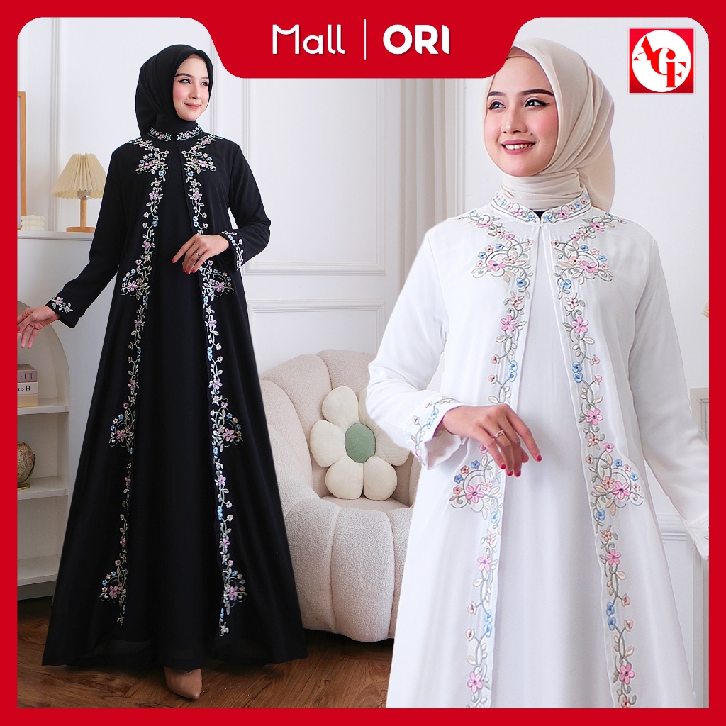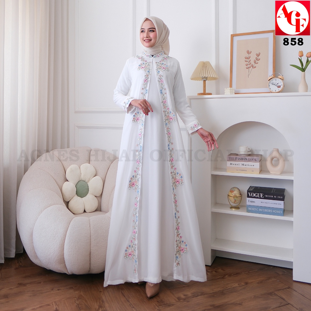 Agnes Hijab - Noura Dress Gamis Putih lebaran 2026 Terbaru Abaya Bordir Bunga Baju Muslim Wanita Dewasa Simple Elegan Gaun Pesta Haji Umroh 858