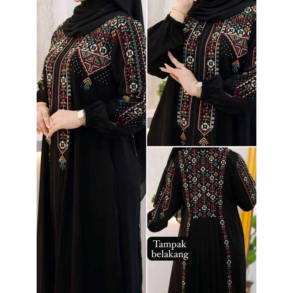 Abaya Turki Premium Gamis Mewah Jetblack Bordir Gamis Kondangan Lebaran Dress Wanita
