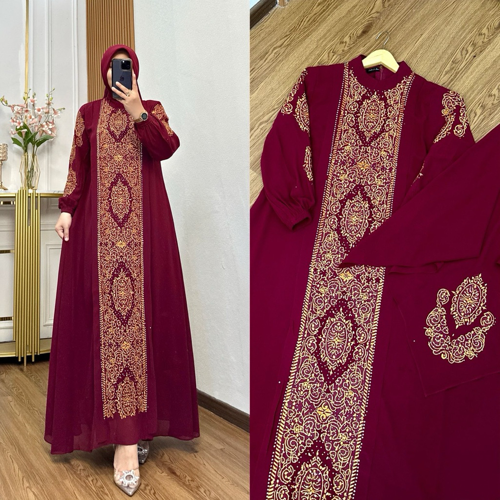 Gamis mewah wanita elegant gamis bordir set hijab gamis pesta wanita kekinian gamis lebaran