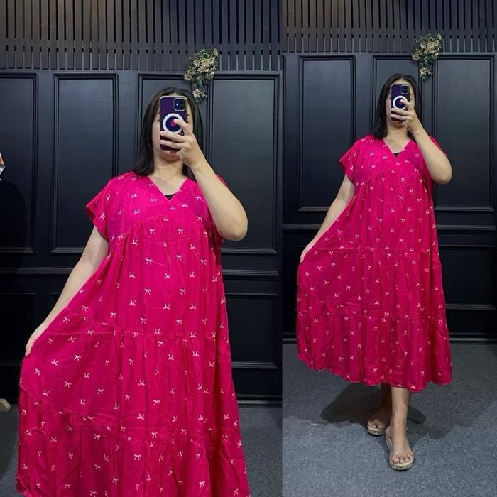 Masayu Daster Jumbo Adem Homedress Rayon Premium Motif Bunga Cantik Nyaman Untuk Tidur Busui & Daily Wear Baju Kerut 3 S