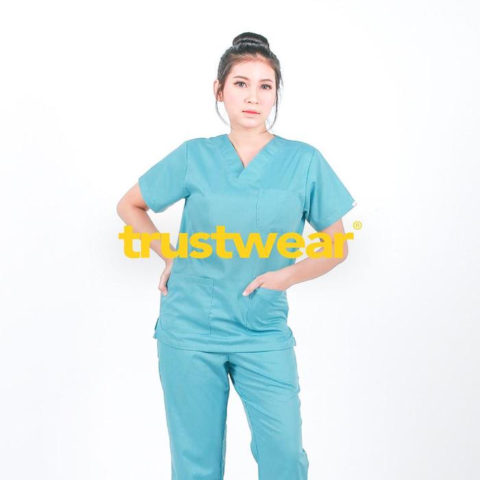 Trustwear - Basic Doctor’S Scrub / Set Baju Celana Jaga Oka Ok Perawat / Dokter Lengan Pendek Ii - Aquamarine, Xs