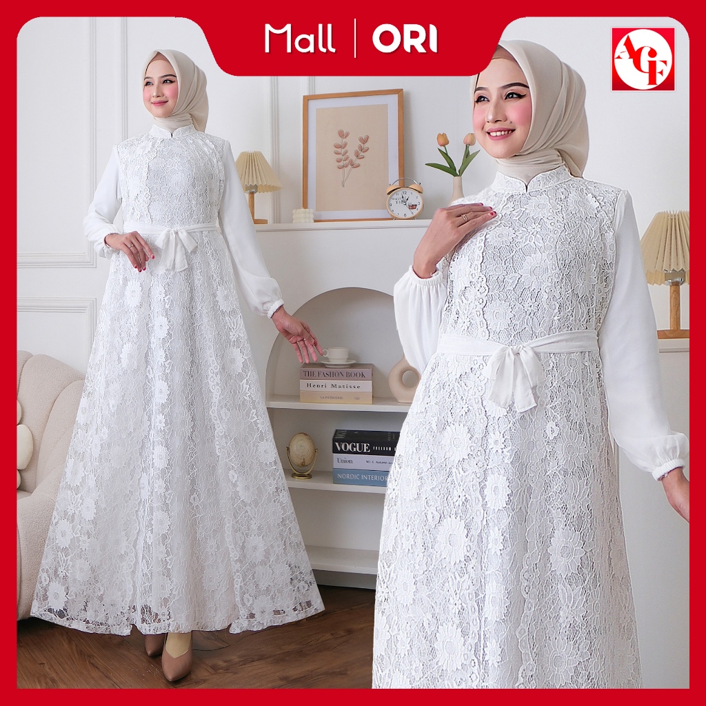 Agnes Hijab - Kharin Dress Gamis Putih Lebaran 2026 Terbaru Full Brukat Original Baju Muslim Wanita Pengajian Haji Umroh 861