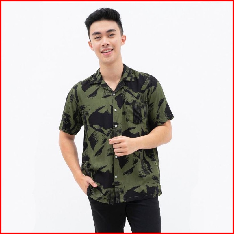 Kemeja Pria Vintage Casual Abstark Lengan Pendek Retro Pantai Hawai Aneka Motif