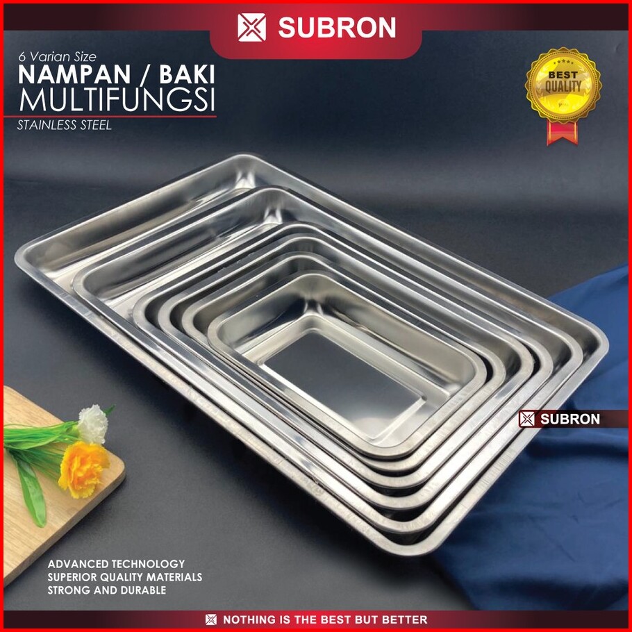 Nampan Stainless Persegi Tray Loyang Kue Kotak Baking Tray Wadah Saji Makanan Stainless Tebal Kuat
