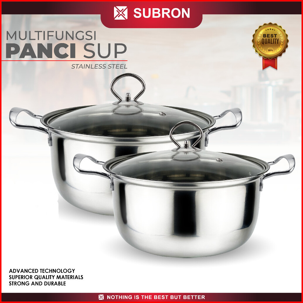 Panci Sup Soup Pot Stainless Steel Tutup Kaca Gagang Stainless 20 22 24 Cm