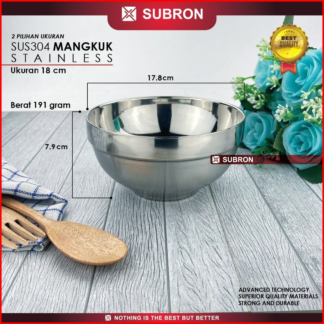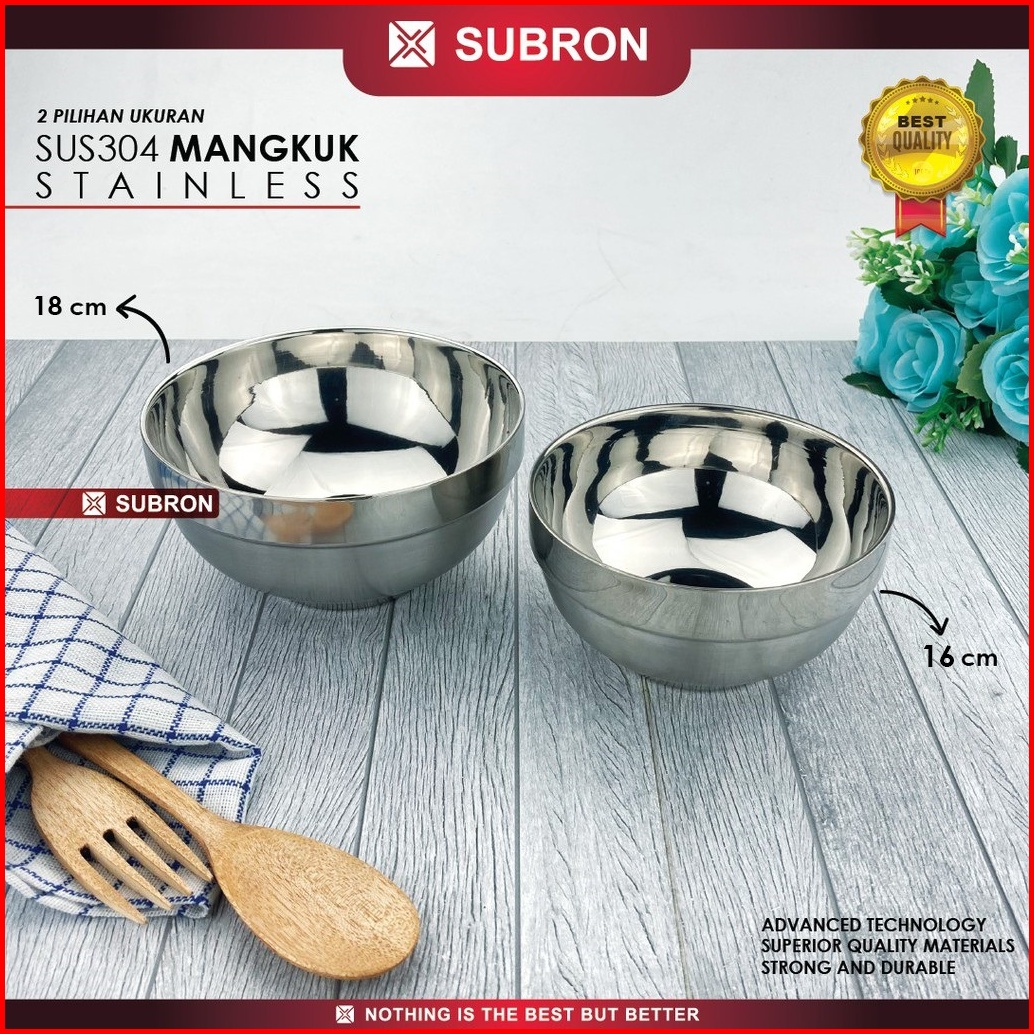Korean Bowl Subron Sus 304 Mangkuk Mangkok Stainless 16cm 18cm Food Grade Korean Bowl 2 Lapis Double Wall Anti Panas Tem