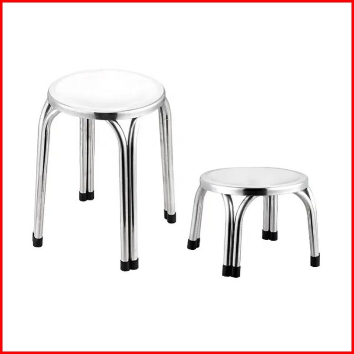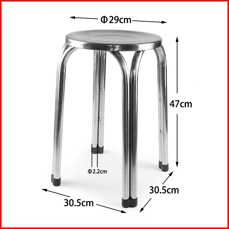 Kursi Stainless Steel Premium Tebal Tinggi 22cm 47cm Untuk Kafe Depot Rumah Bangku Baso Kursi Taman