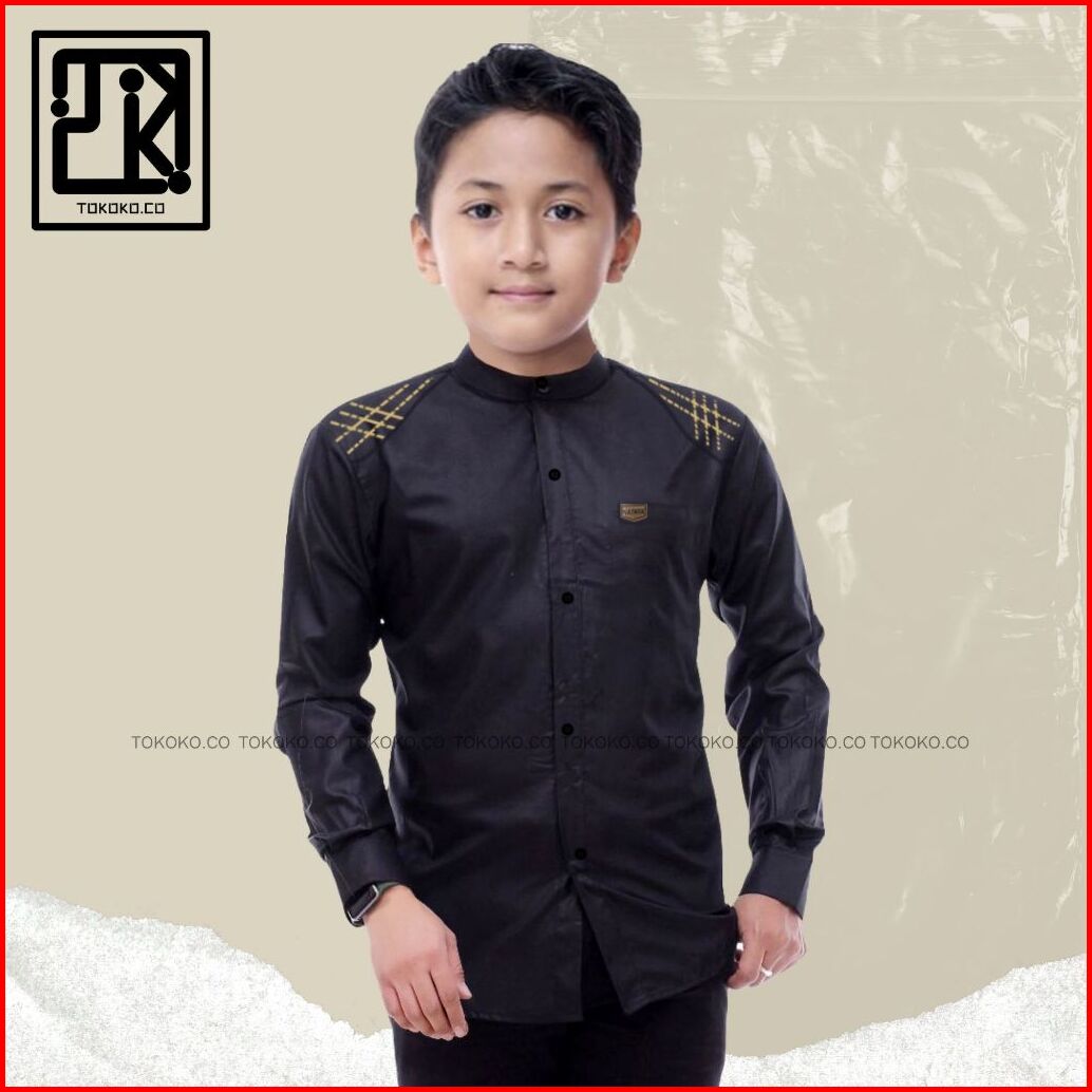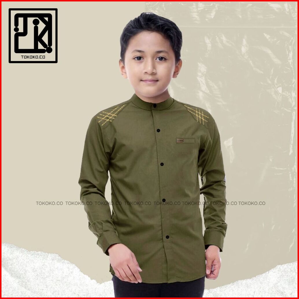 Baju Kemeja Koko Anak Laki Laki Lengan Panjang Motif Polos Untuk Anak Usia 5 Tahun Sampai 14 Tahun