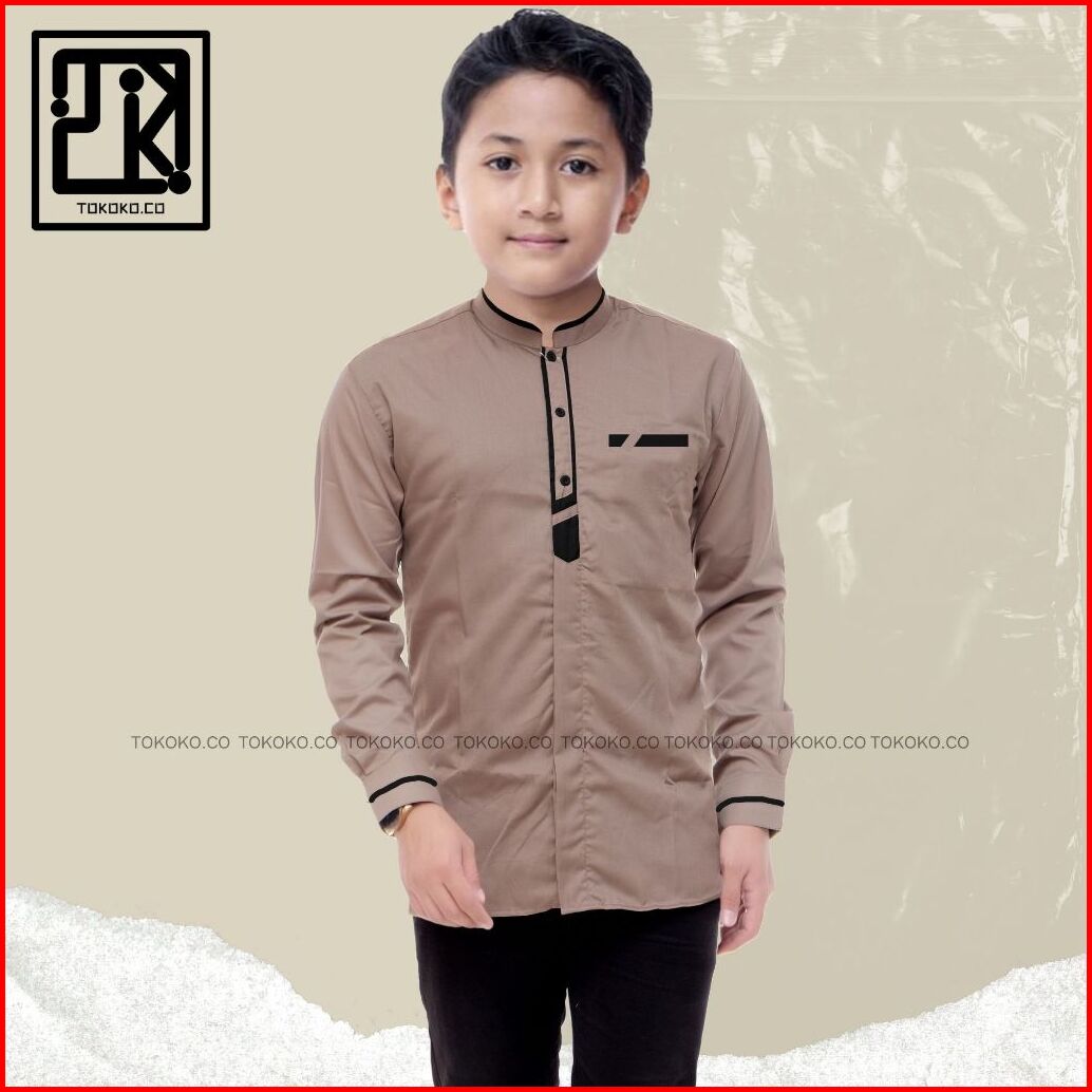 Baju Koko Anak Polos Lengan Panjang Warna Putih Hitam Cokelat Skyblue Usia 5 Tahun Sampai 14 Tahun