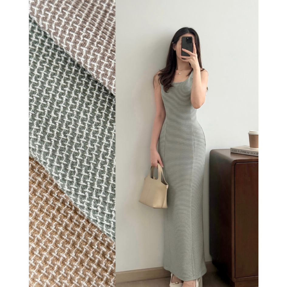 Kadaka D-0262 Tweed Sleeveless Maxi Dress | Dress Panjang Wanita Tweed