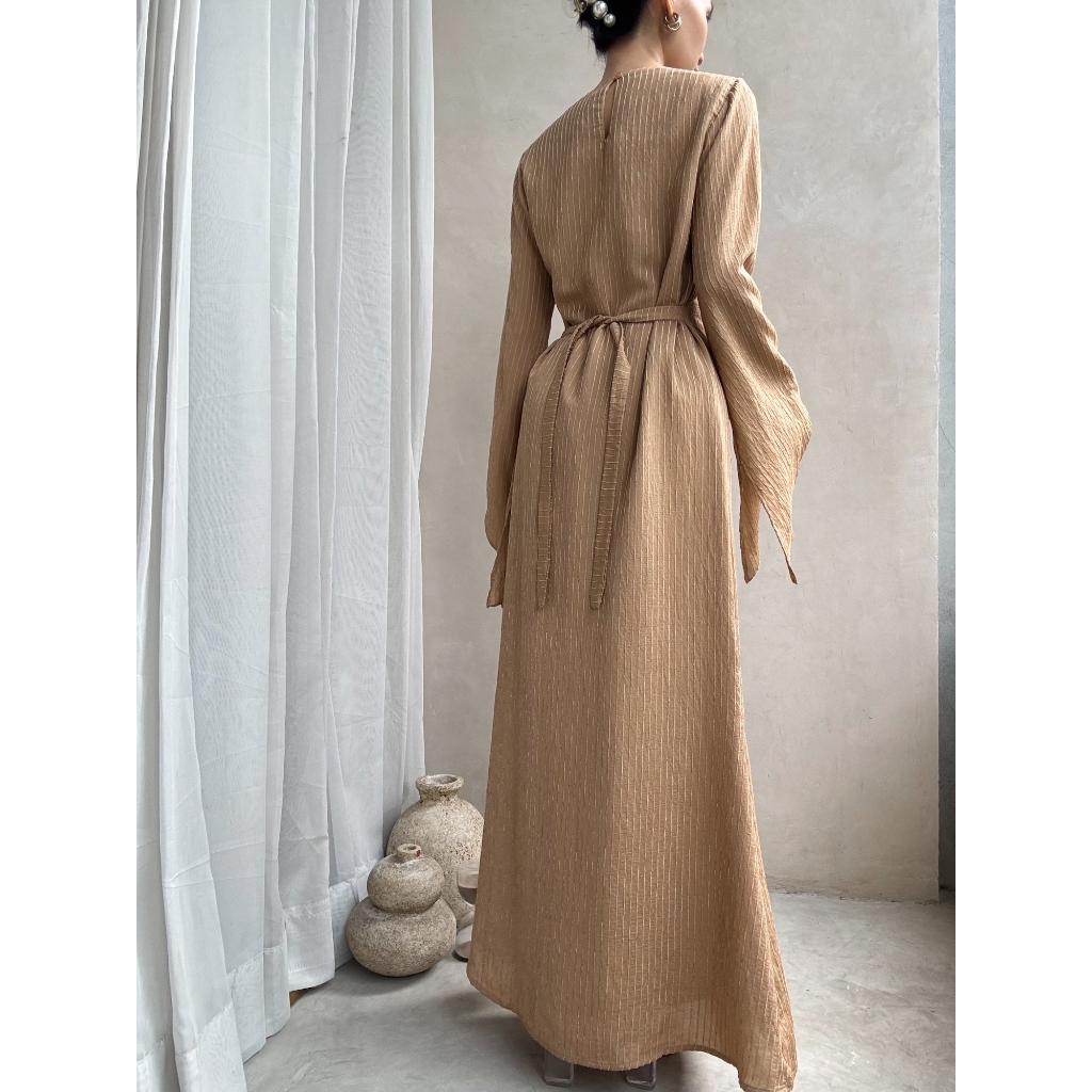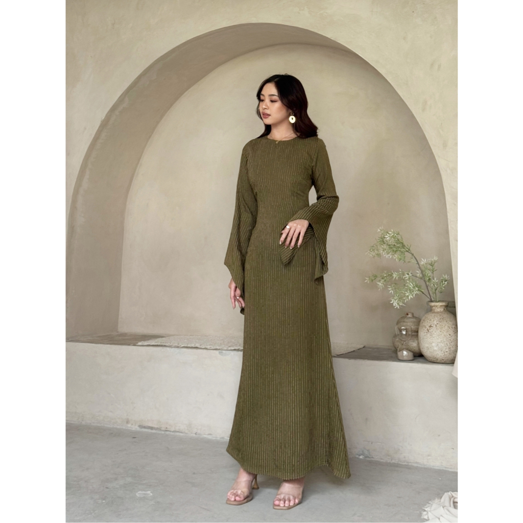 Kadaka D-0260 Long Sleeve Dress with Adjustable Waist | Dress Maxi Wanita Tali Pinggang