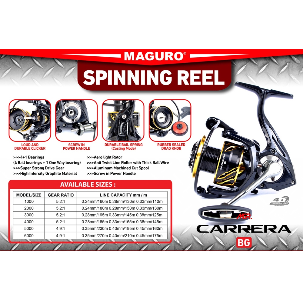 Reel Spinning MAGURO CARRERA BG CARRERA BR CARRERA GS Power Handle Harian Galatama Laut