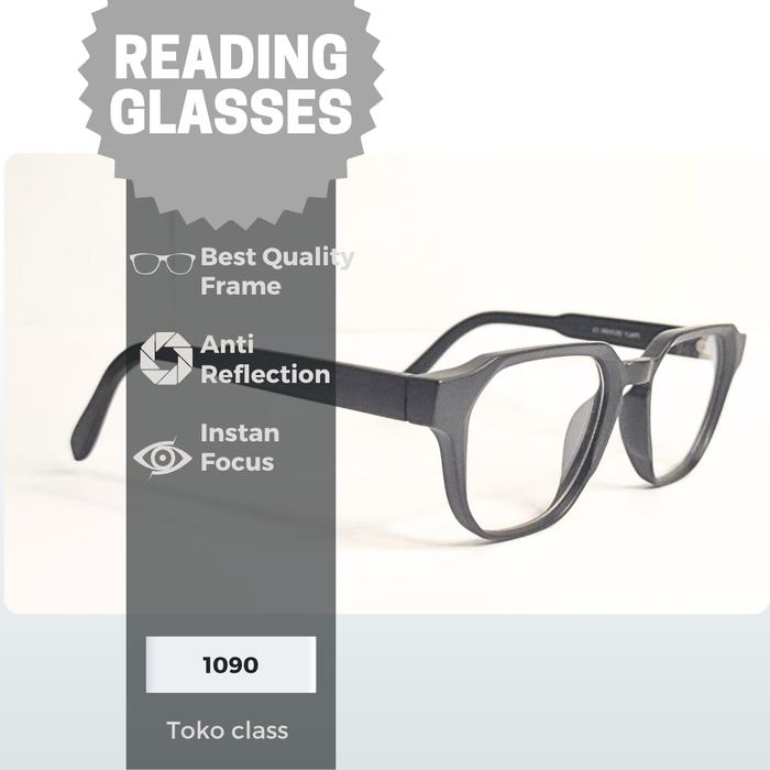 Kacamata Baca 1090 Black Auto Fokus Melihat Dekat Lensa Kaca dan Lensa Blueray - Lensa Bening +1.00