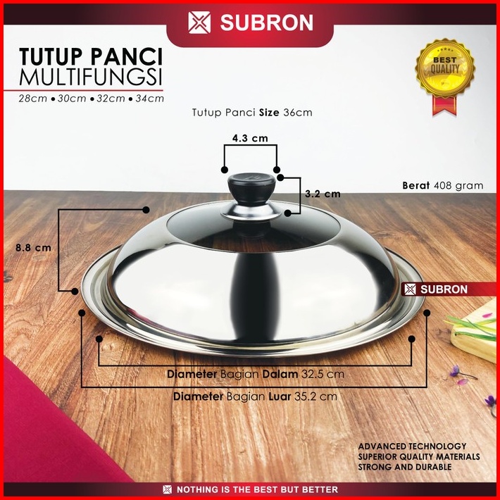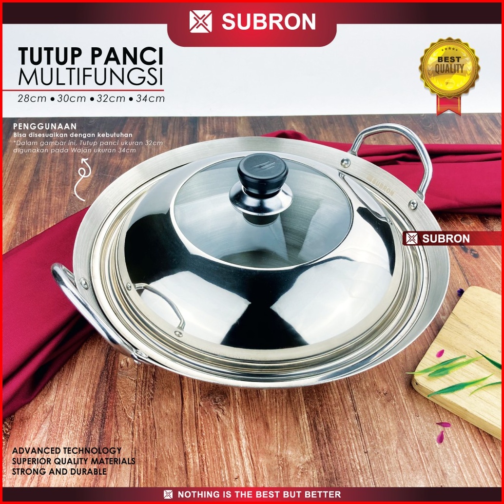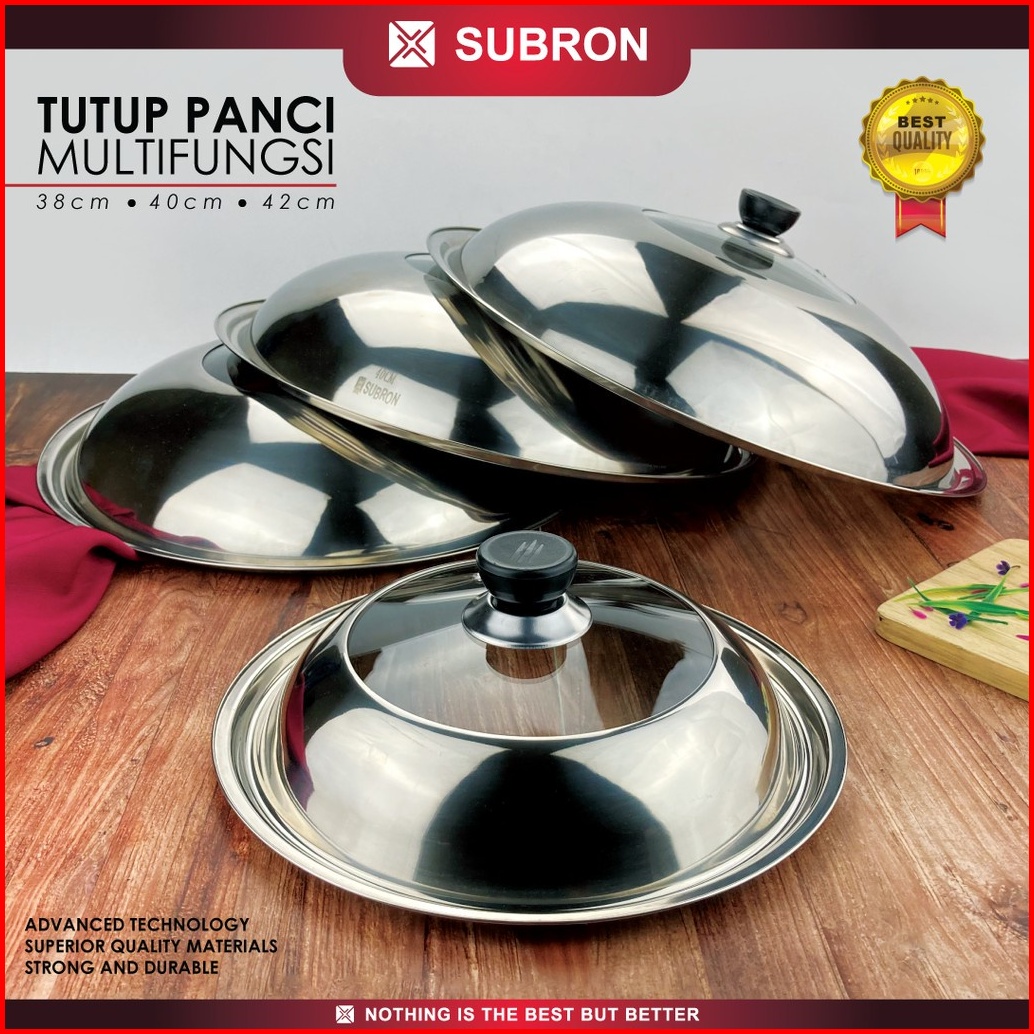 Tutup Panci Stainless Kaca 30cm 36cm 40cm 44cm Wajan Kuali Wok Multifungsi Baskom Subron