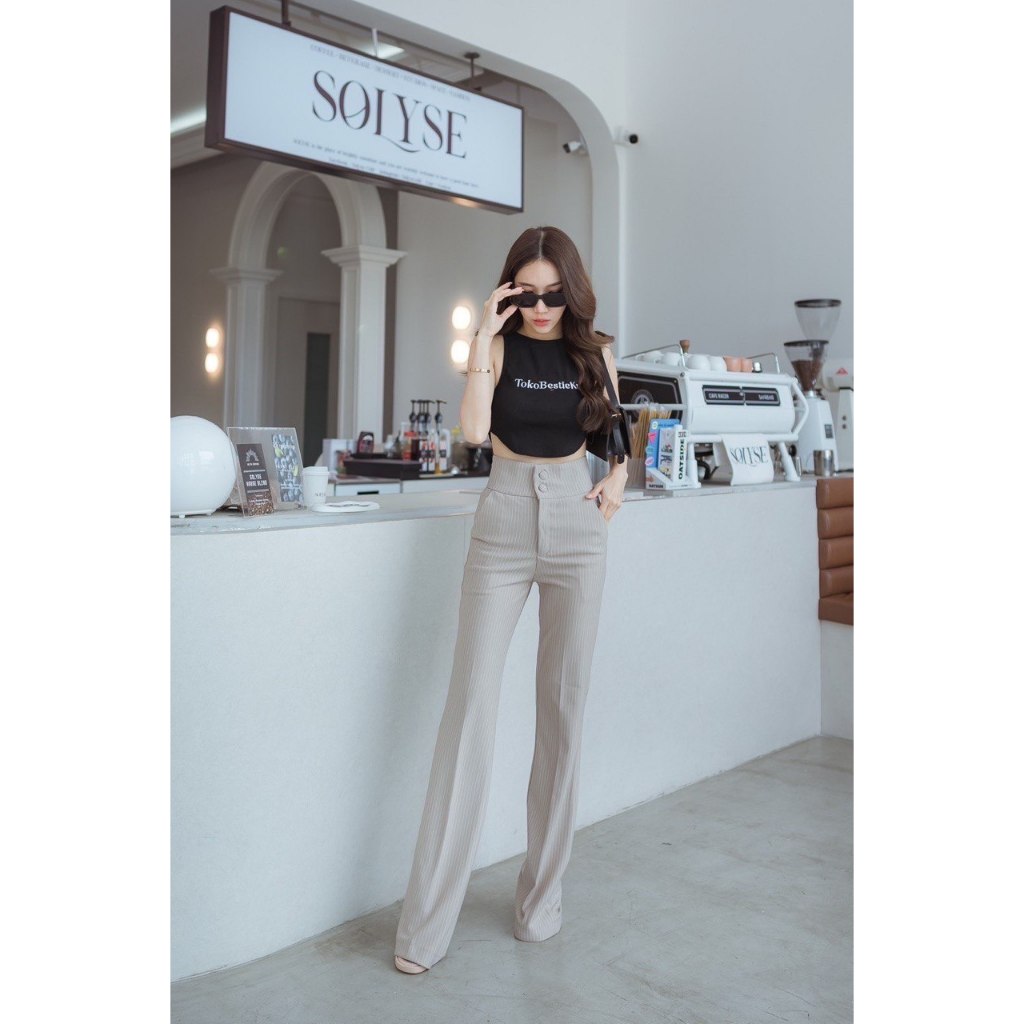 Esme Salur Celana Cutbray Premium Original Bangkok High Waist Flare Pants Import