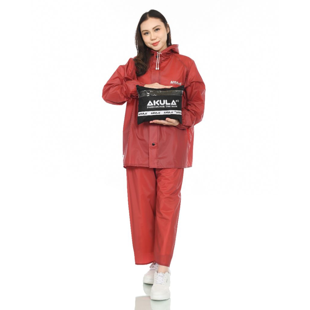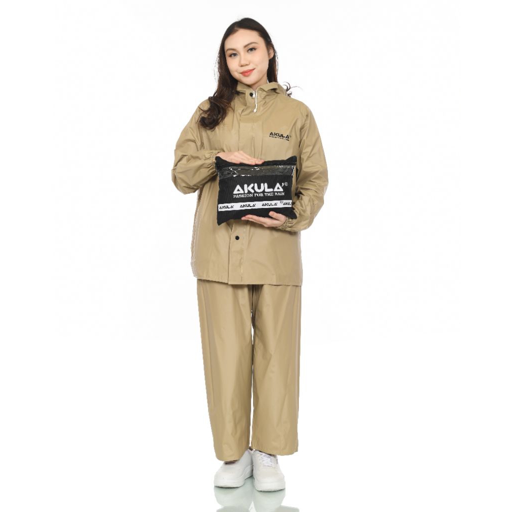 AKULA Jas Hujan Pria Wanita Bahan Tebal KUat Elastis Anti REmbes Krem Beseller