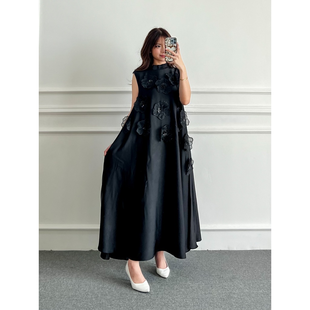 Dolla - Sui Dress Flower Long Dress Satin Tebal